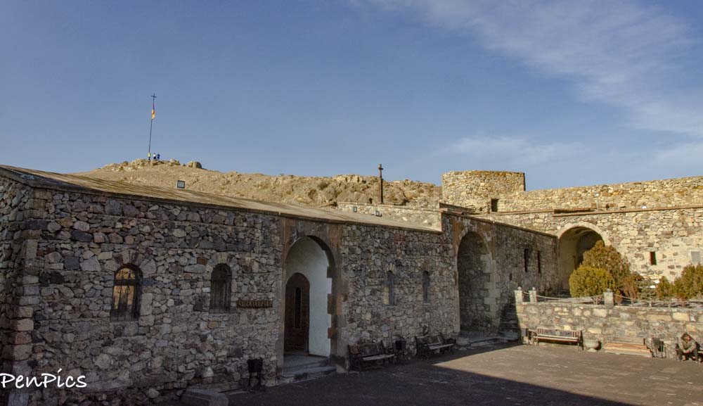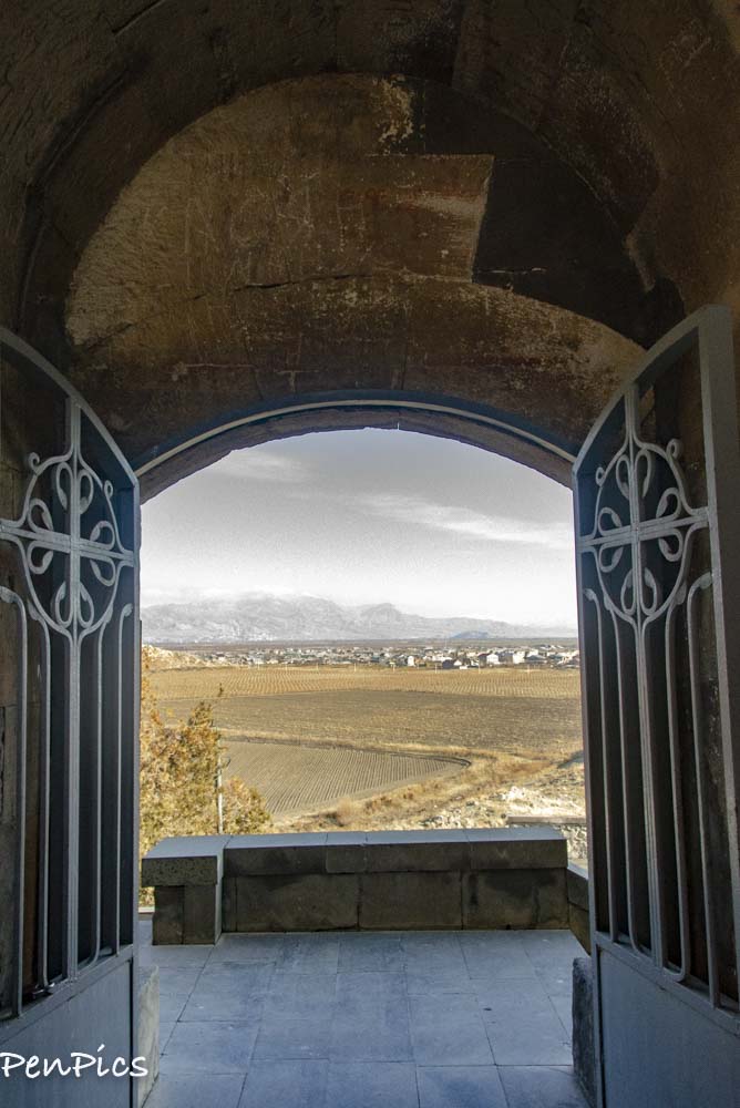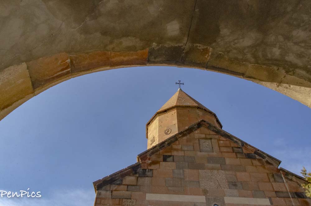 This near the village of Pokr Vedi, long ago it was the site where Artashat, the ancient Armenian capital, was located. This Monastery is very close to the border with Turkey, and the border can also be seen on a clear day.
