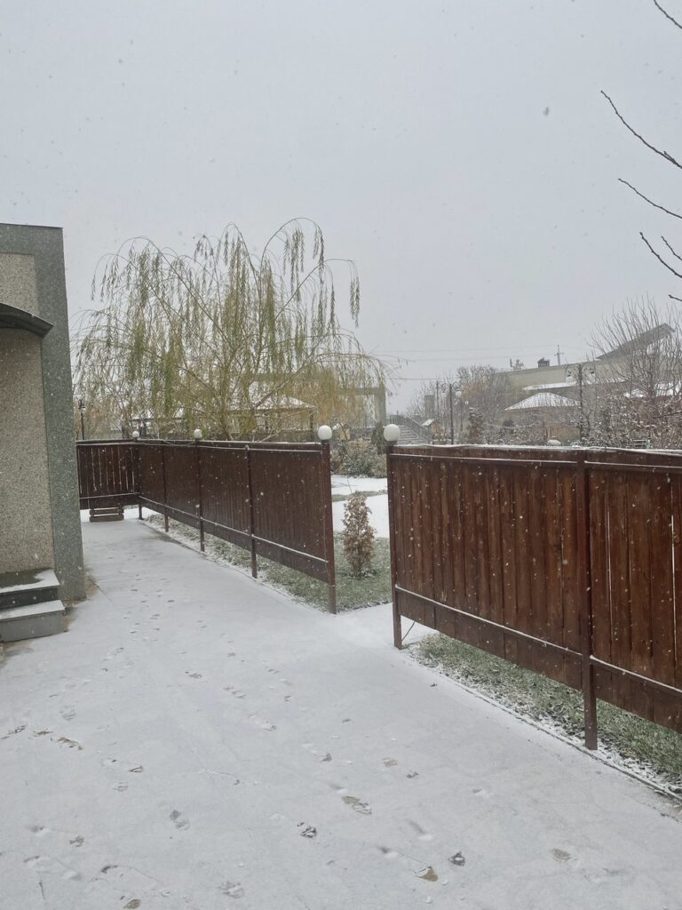 So far, we woke up to snow, again, after it has been clear for our arrival, but the sky is turning blue, slowly. We shall see.