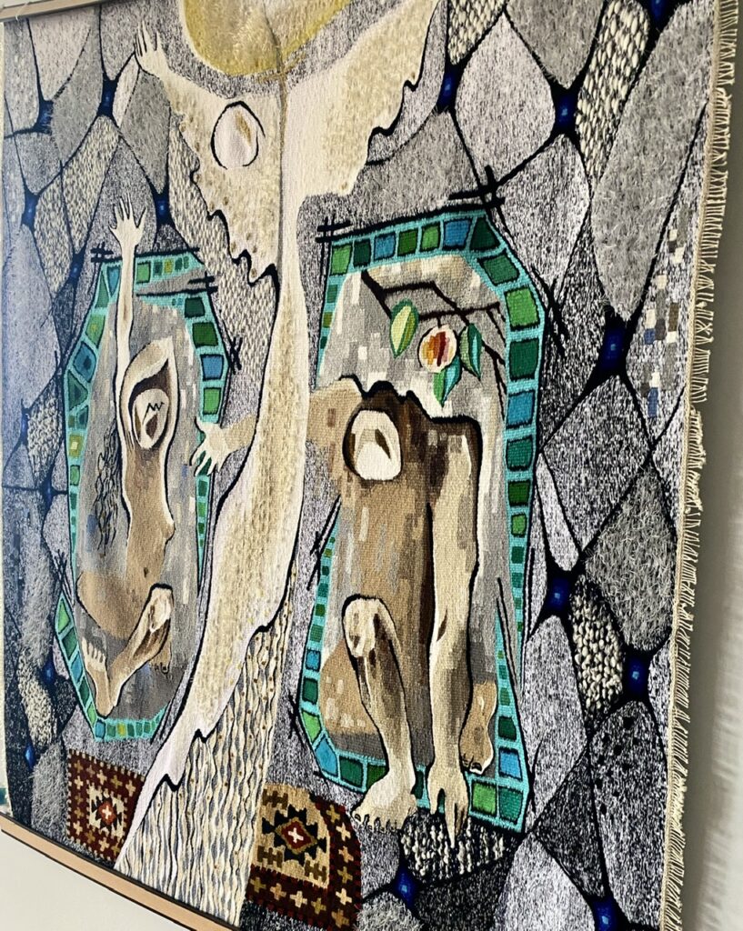 Ruzan does mostly colorful woven tapestry. Here colors and designs tell a story. I’m definitely drawn to her work.