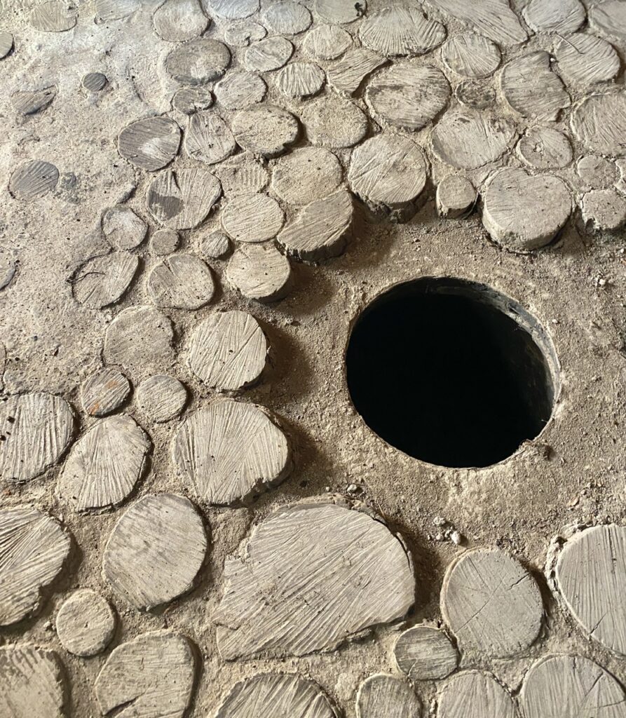 A fireplace in the floor