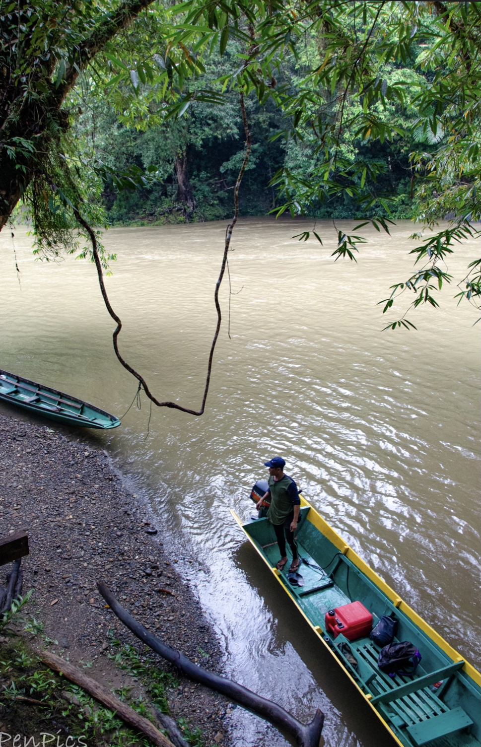 After lunch, and lots of water, filling our water bottles to the rim, with a little time cooling off in the water, we loaded back into the long boat, and went further, to another unloading point, which is where we would begin our long, hot and hard hike, to the the canopy walk of the Rainforest.