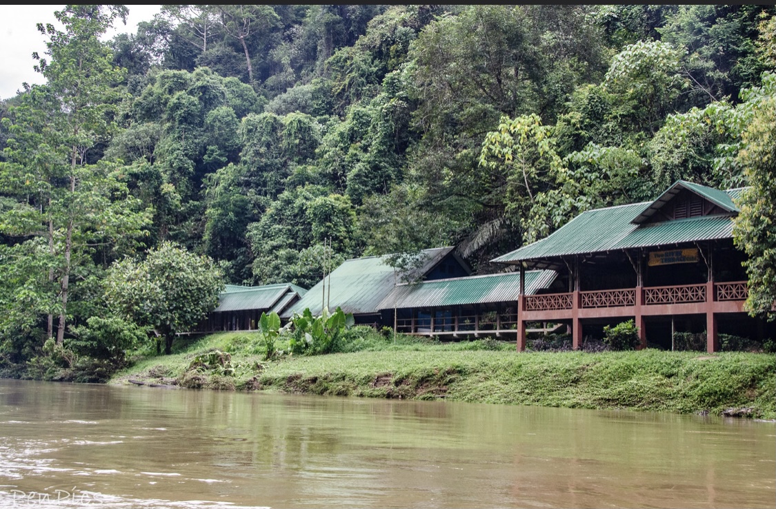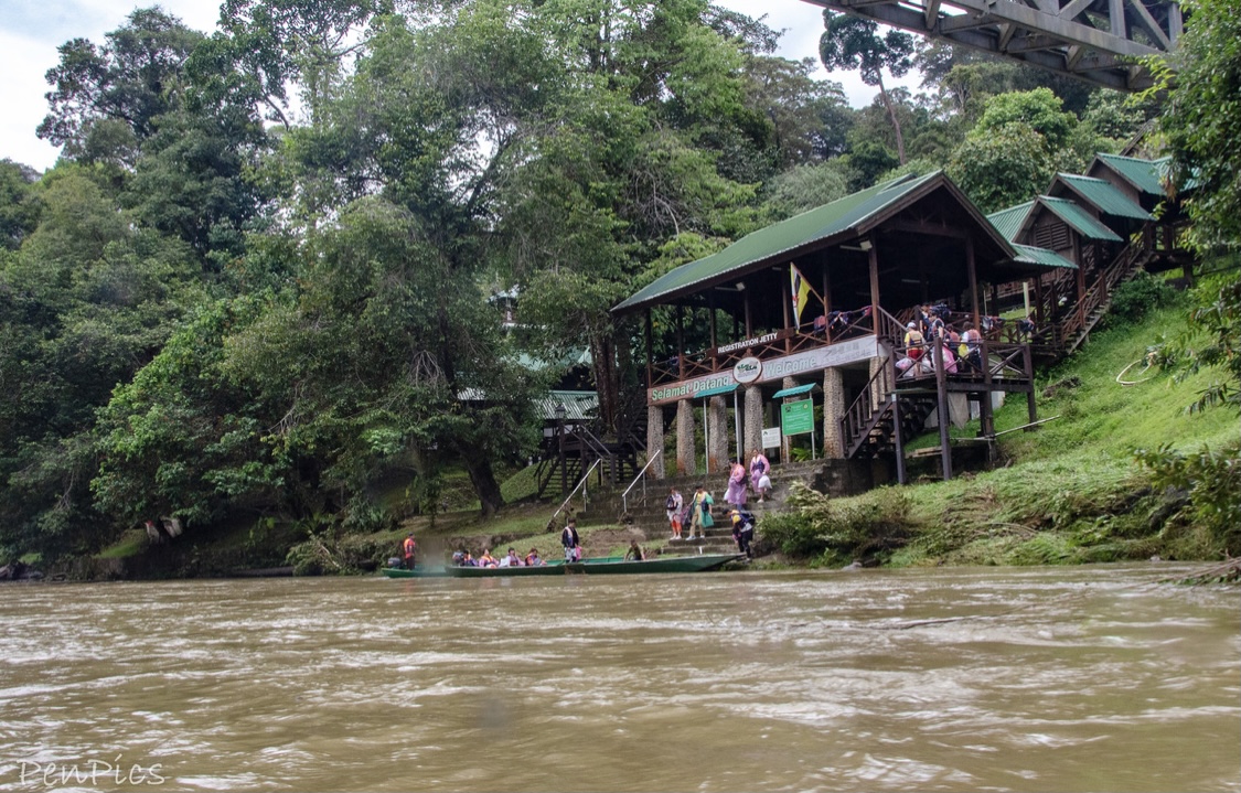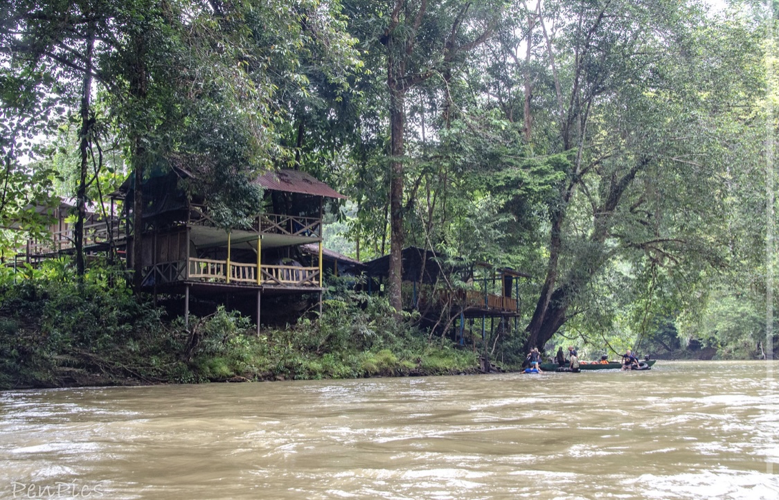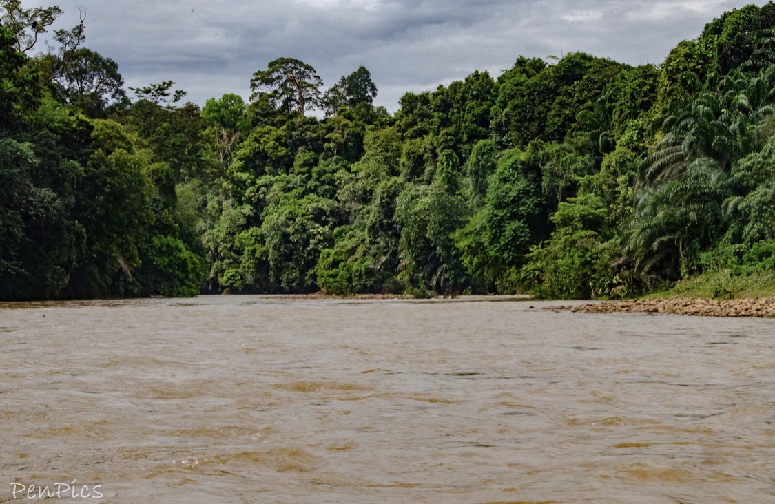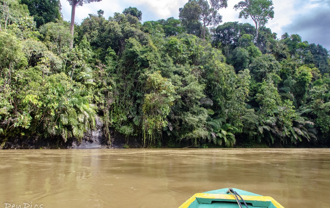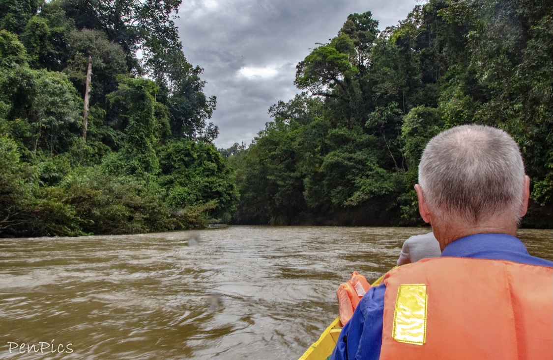 The virgin Rainforest looked absolutely majestic, and it felt very special to be there! The sun pierced through densely packed trees whilst the call of a hornbill and the screech of macaques occasionally rose above the almost deafening chorus of crickets. After about a half hour, our long boat driver, expertly pulled us over to a grass/mud bank, where we unloaded to enjoy a delicious lunch, to help fuel us up for what was coming. We were hungry. It had been over two hours, since leaving on the first coffin boat, to get this far.