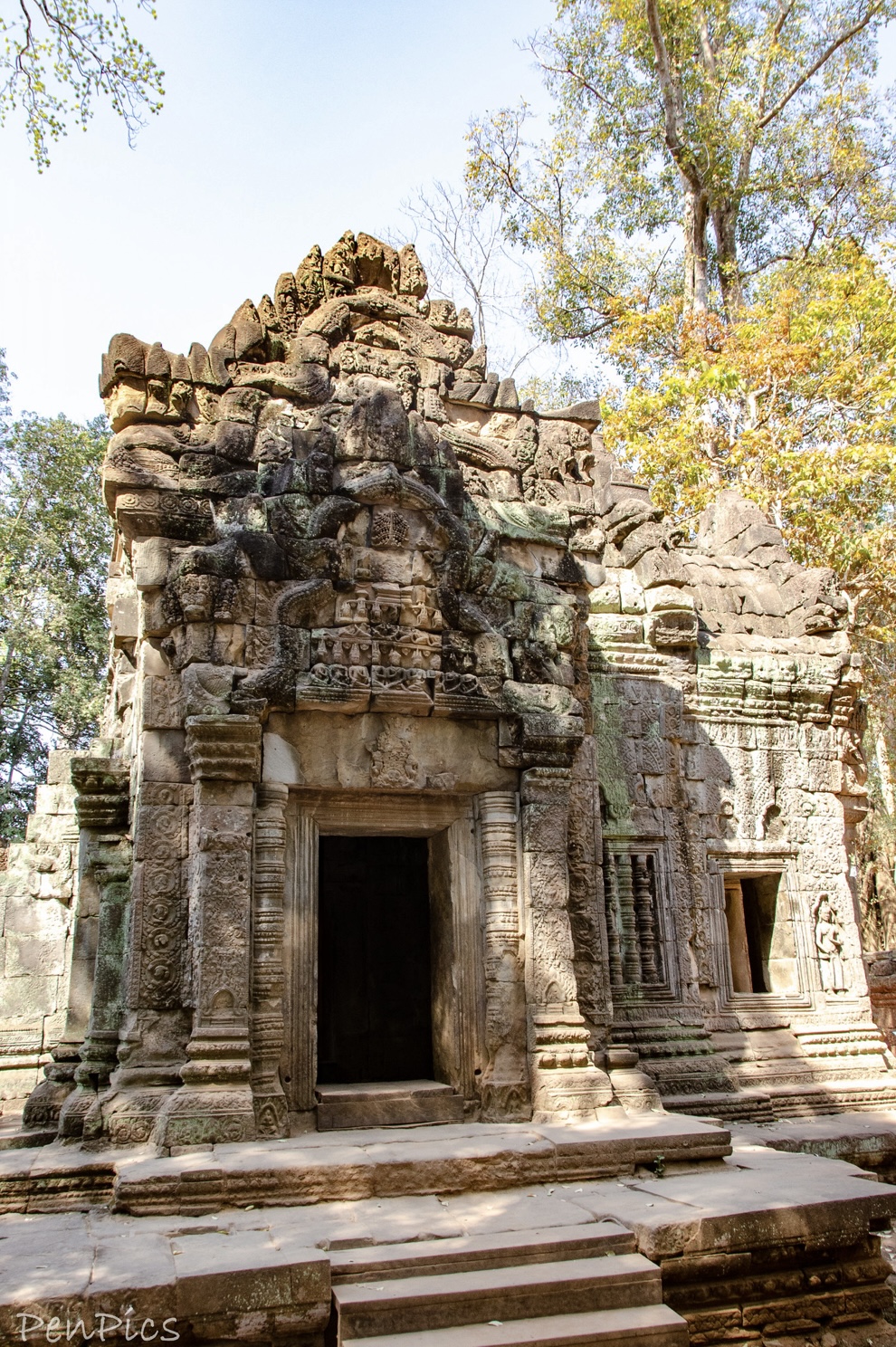 Many of the figures of Buddha in niches were destroyed in the process and some were converted to Shiva Linga (Hindu). The Temple has remained in its collapsed state, partly hidden by jungle and is also famous for the interplay between the giant tree roots and the stonework. Ta Prohm is part of the small circuit of the Angkor complex and is just a few minutes in a tuk tuk away from Angkor Wat or Angkor Thom. The main buildings of the temple are encircled by a large wall and so are not immediately visible from the road but rather discovered by a short walk on a jungle-lined path.was a monastery at one time; king Jayavarman VII’s 1st major temple project from the 12th to 13th century, which was dedicated to his mother.
