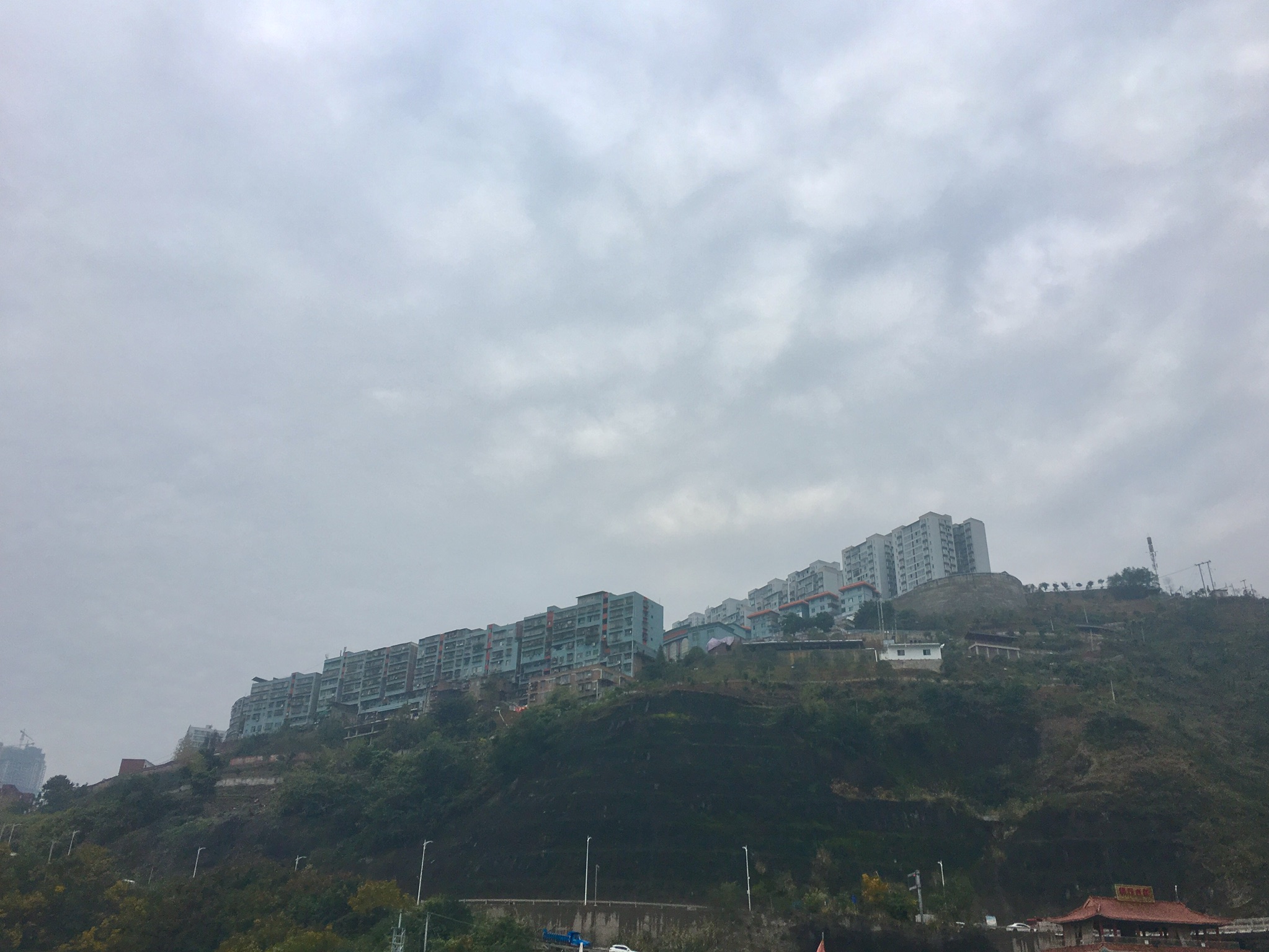 The hazy picture is of the city of Fengdu. It is very sad for the air quality here in China. There is a price to pay, when so many products are “made in China.” That, and the coal burning.