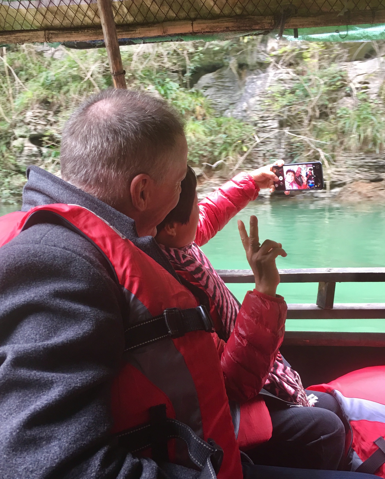 On this next morning, we transferred from the cruise ship to a large long boat, then to another (smaller) longboat, to accomplish the “Lesser Three Gorges,” and the “Mini Three Gorges” Tours.