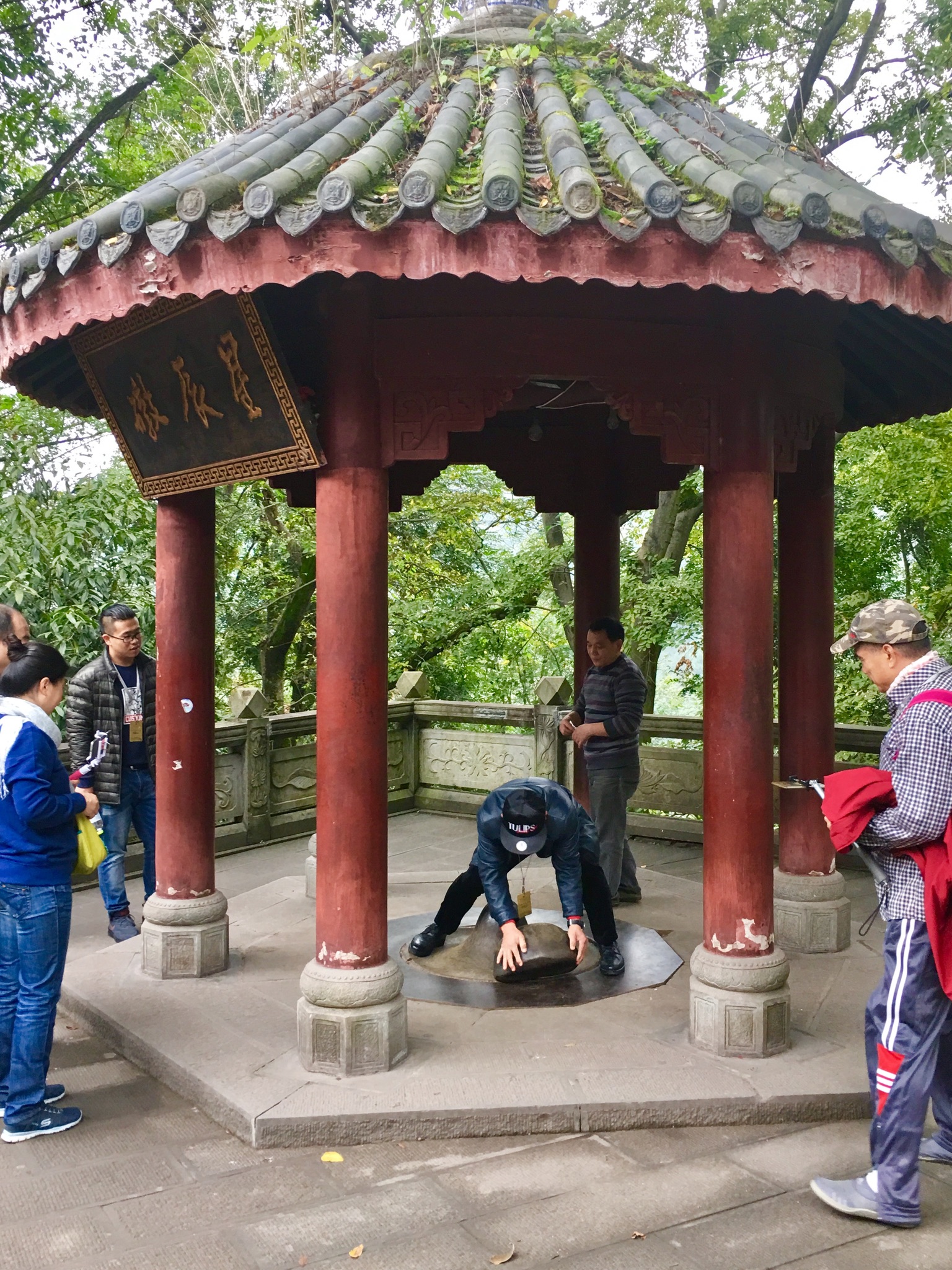In front of Ganyu Palace, at the top of the Jade Seal Hill is the Duck Hole. It is another legend which is said that as spring turns into summer, if you take a live duck and drop it through the hole, 15 seconds later it will appear floating down the Yangtze. In the past the monks apparently drew their drinking water from this hole, by using a pipe made of bamboo.