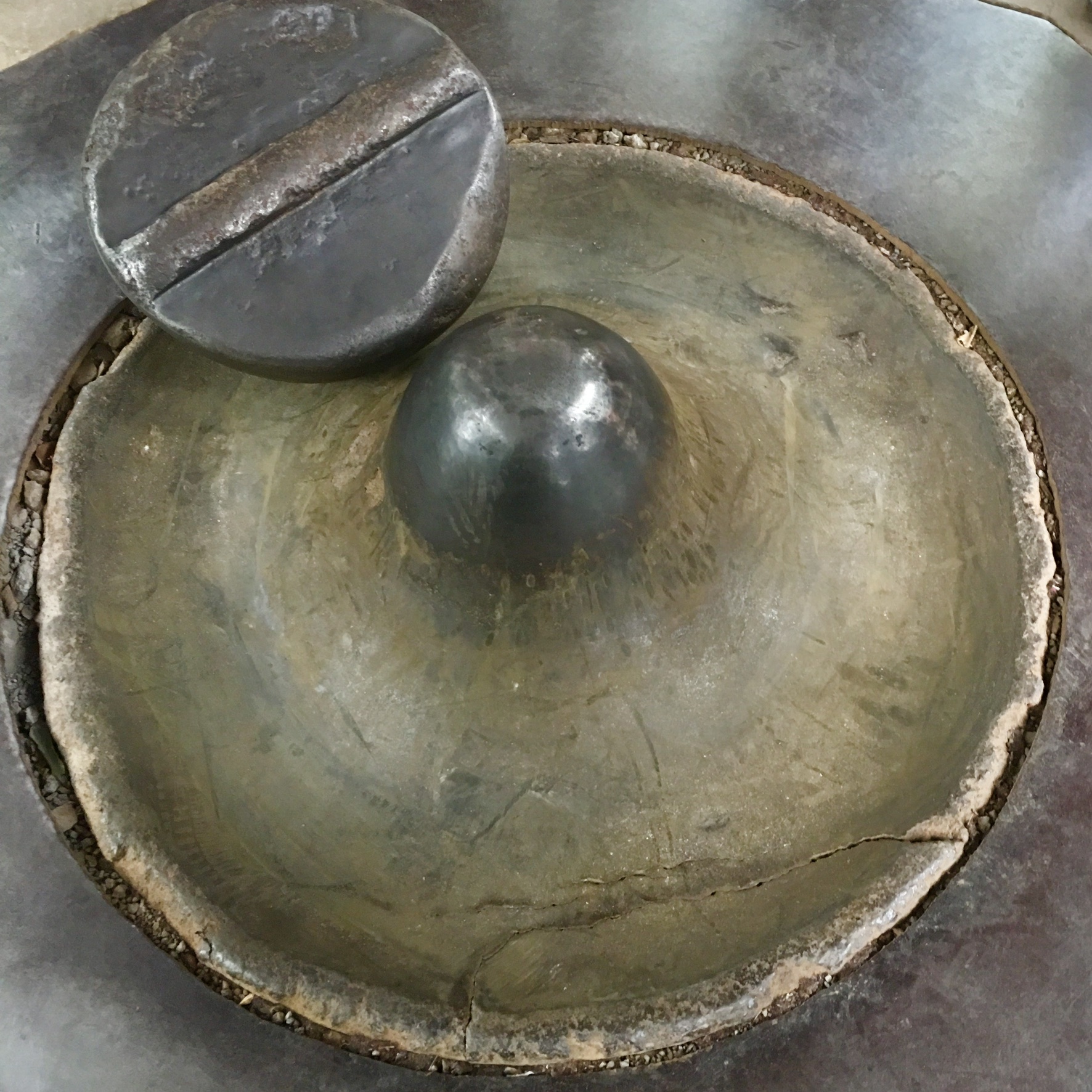 In the rear hall are the remains of the Rice Flowing Hole. Legend has it that long ago just enough husked rice would flow up from the small hole each day for the needs of the monks and their guests. One day a greedy monk, thinking he could become rich, chiseled a bigger hole, and the rice flow ceased forever.