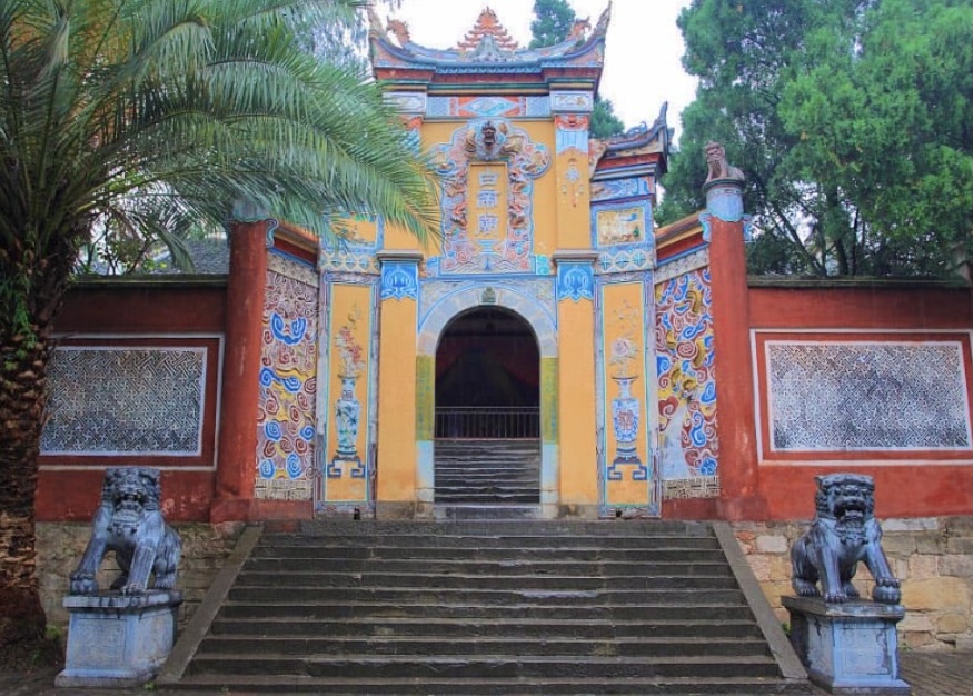 Having over a three hundred year history, the palace covers an area of nearly 2,908 square yards. It is composed of a temple gate (paifang) and the palace itself. The gate is an archway made of wood and stone rising to height of nearly 33 feet. The palace is the nerve center of this scenic area and is the oldest and largest temple on Ming Mountain.