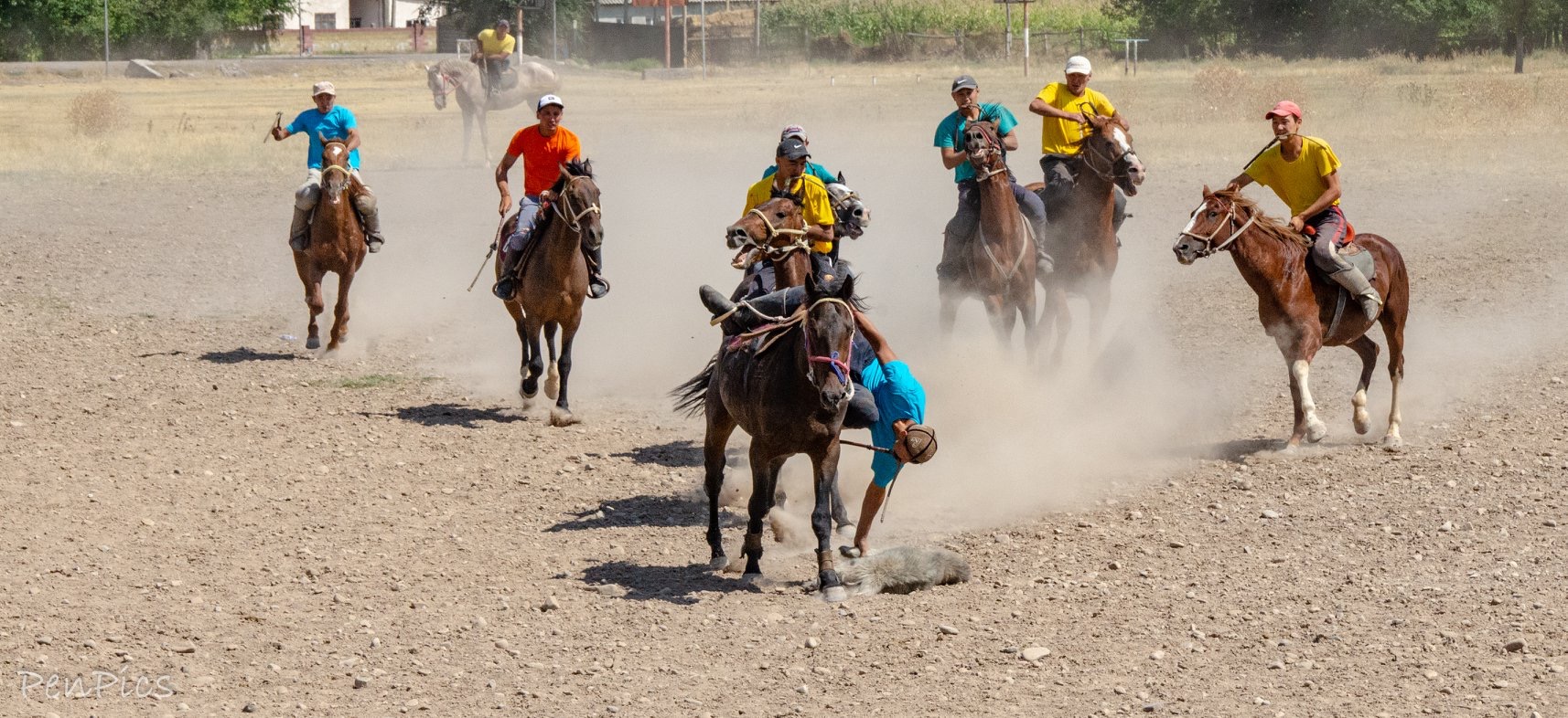 …After, you will watch Kyrgyz national horse game “Ulak Tartysh” (goat pulling). Ulak Tartysh (a.k.a Kok Boru) is a fight between two teams of riders for a goat carcass.