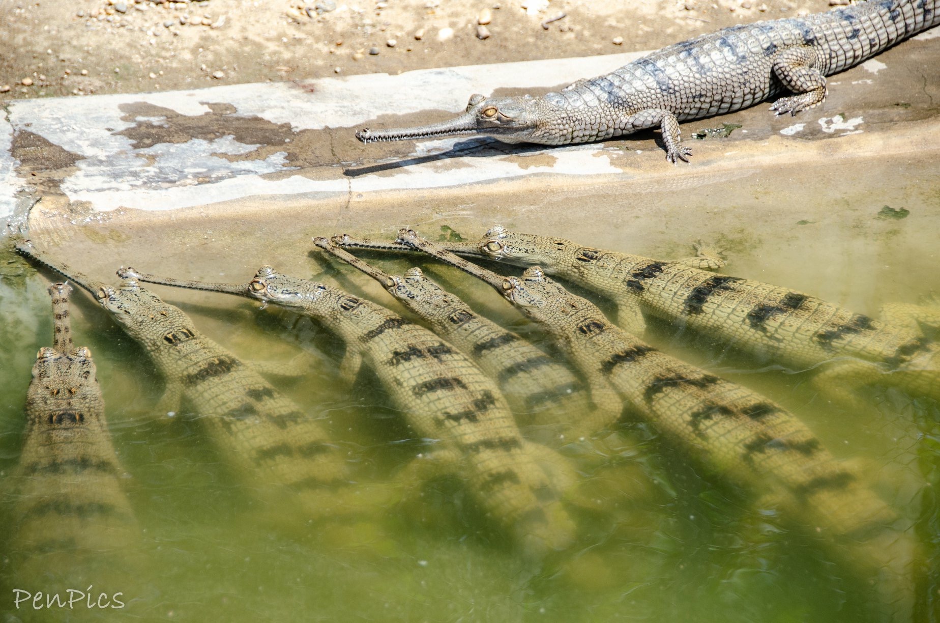 A Gharial breeding farm was started in Chitwan National Park, to help ensure this specific type of endangered Crocodile does not go extinct. One day on Safari, deep in the jungle, we got out and walked around the Gharial Breeding Farm. They are fish eaters only, and while the program is good, the success rate, after relase, is not as high as they would like to see. Sadly, pollution plays a part in this, as fish are its food source, and fish are affected by pollution, too.