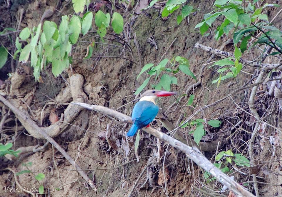 OMG….. I captured this chance photo within 30 seconds of starting our float down the river from inside the dugout. This is the rare crocodile species; “Gharial.” They are strickly fish eaters. We had previousy visited the breeding center where they work hard to save this breed of Crocodile, and then introducing back into the wild, after they have matured. Here is proof they are living in the wild! This guy was at least eight feet long, and a real beauty! They are endangered, so this was a rare treat to see! We floated directly over the top, and there he was on the rocky bottom. The water was only a couple feet deep, or I would not ha we seen it.