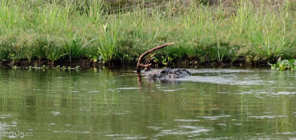 Early in the morning, while on Safari, we saw this Crocodile with a fresh kill in his jaws. The meal would be a huge Axis Deer.