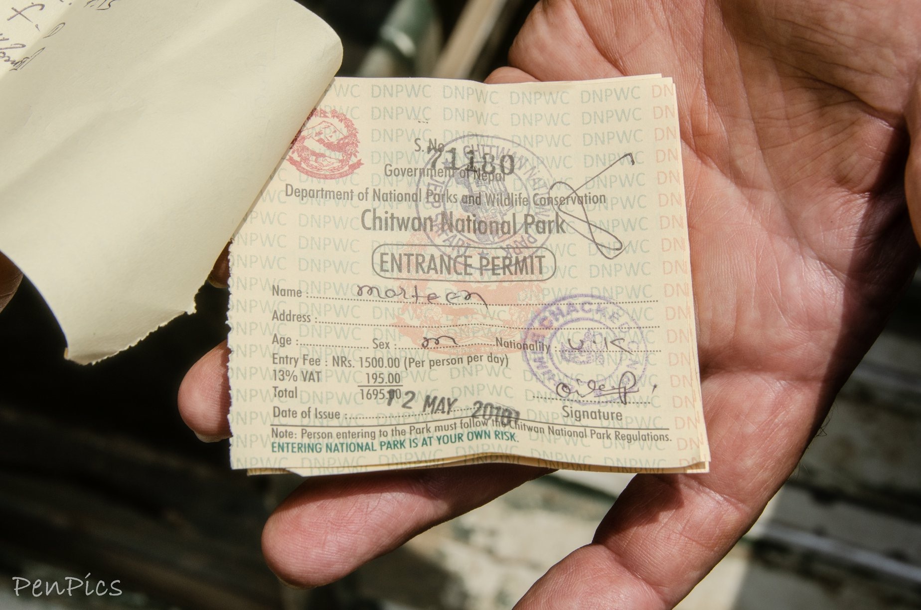 For our Safari in Chitwan National Park, we entered on the Nepal side, from the town of Sauraha. It is from there, the military manages the post, where daily passes must be purchased for entrance into the Park. The military personnel were always late to open, which contributed to the lack of Tiger sightings at the break of dawn.