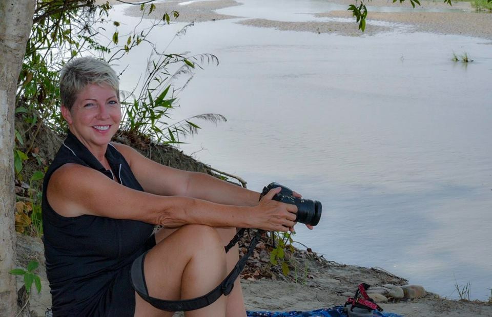 Outside the Jeep, in the shade, watching for Tigers to cross the River. No luck, but Chitwan is so beautiful, it was still wonderful.