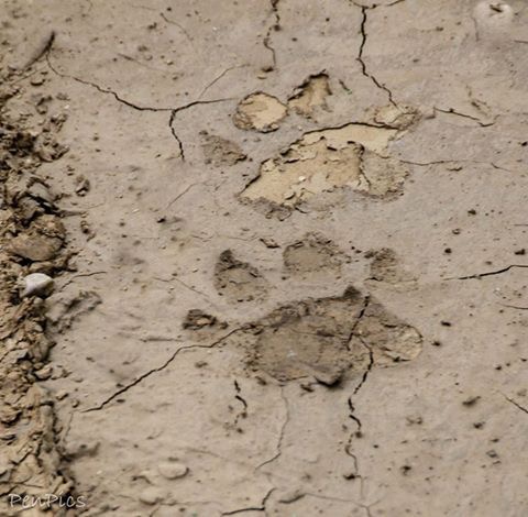 These prints were much smaller; next to the mama Tiger prints, seen below,  These were cub prints.    Prints like these (in a muddy patch in an otherwise very dry road) only are like this up to an hour at best; could have been five minutes shy of seeing the Tiger- or 50 minutes. No way of knowing for sure.