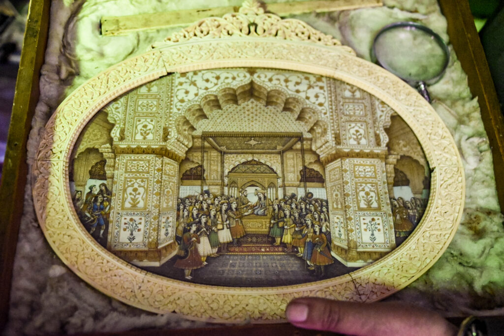 We were up and running, winding through the streets. Scooters cutting off cars and anyone that hesitates loses his spot. A very special museum is in our future and it is privately owned. Fakir Khana Museum is seen by appointment only, and we were the only ones seeing it today. Pandemic travel is lonely as many places are empty or near empty when we view them.