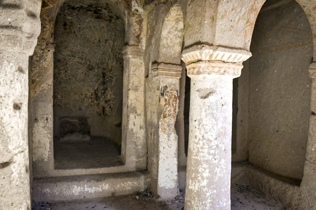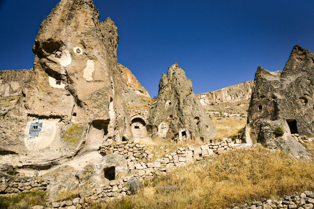 Today was one of those days, driving back and forth in a valley, we felt had so much to offer; a story told, lives lived and history inscribed. We were searching out homes made of stone caves, which ancient people carved a life out, for their families to live in. This area where many people lived, were homes called in these fairy chimneys. They also carved dovecotes in the soft tufa so the pigeon eggs and guano could be harvested. The guano was used for fertilizer. The egg whites acted like glue and was mixed with the tufa to make a plaster that would cover the cave walls of churches and homes. Paintings could be made on the stable surface, once the plaster mix was applied. Once the soft tufa was carved out, the surface would oxidized and harden.