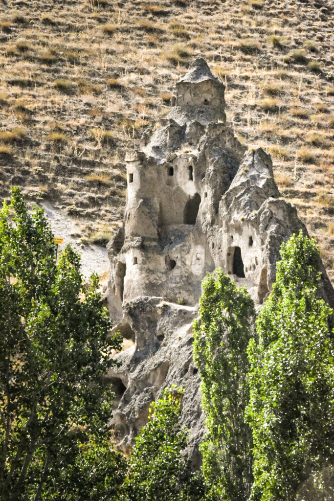 We ventured further down the road to the end of the canyon to find six more carved churches. Many Christians must have lived in these canyons. The area is fertile for growing crops with a stream for water. The Silk Road passed through this canyon, so many caravans brought riches to these simple Christians.