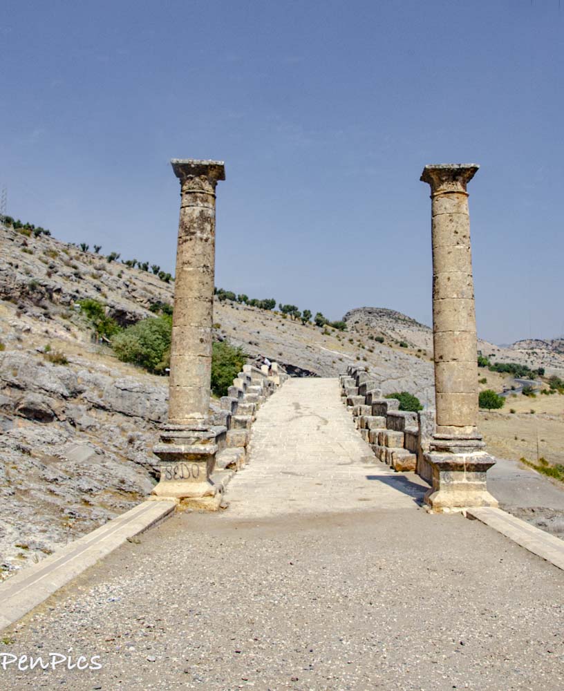 Commagenean cities built four Corinthian columns on the bridge, in honor of the Roman Emperor Lucius Septimius Severus (193–211), his second wife Julia Domna, and their sons Caracalla and Publius Septimius Geta, as stated on the inscription in Latin on the bridge.