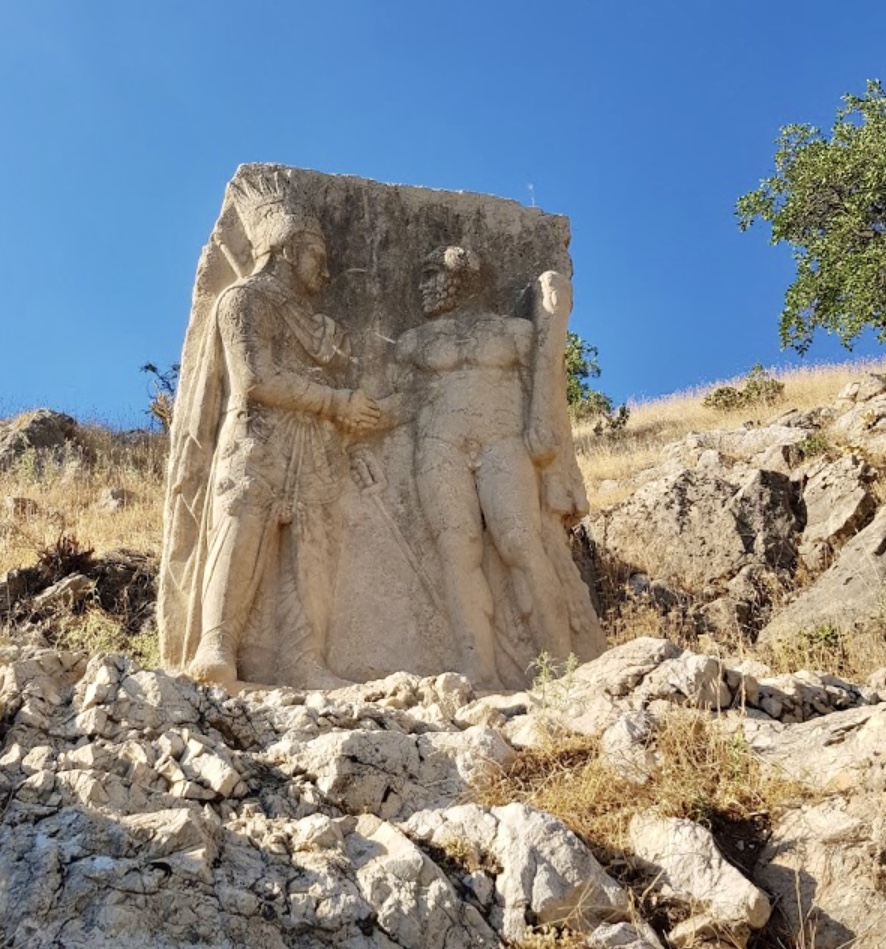 Arsemia was once the summer residence of the Commagene kings, and is located near Adiyaman. At the foot of this ancient city there is a magnificent relief representing Heracles (or maybe Artagnes, a Persian deity whom the Greeks identified with Heracles) shaking hands with King Mithridates of Commagene from around 50 BC and next to it is located the greatest Greek inscription of Anatolia.