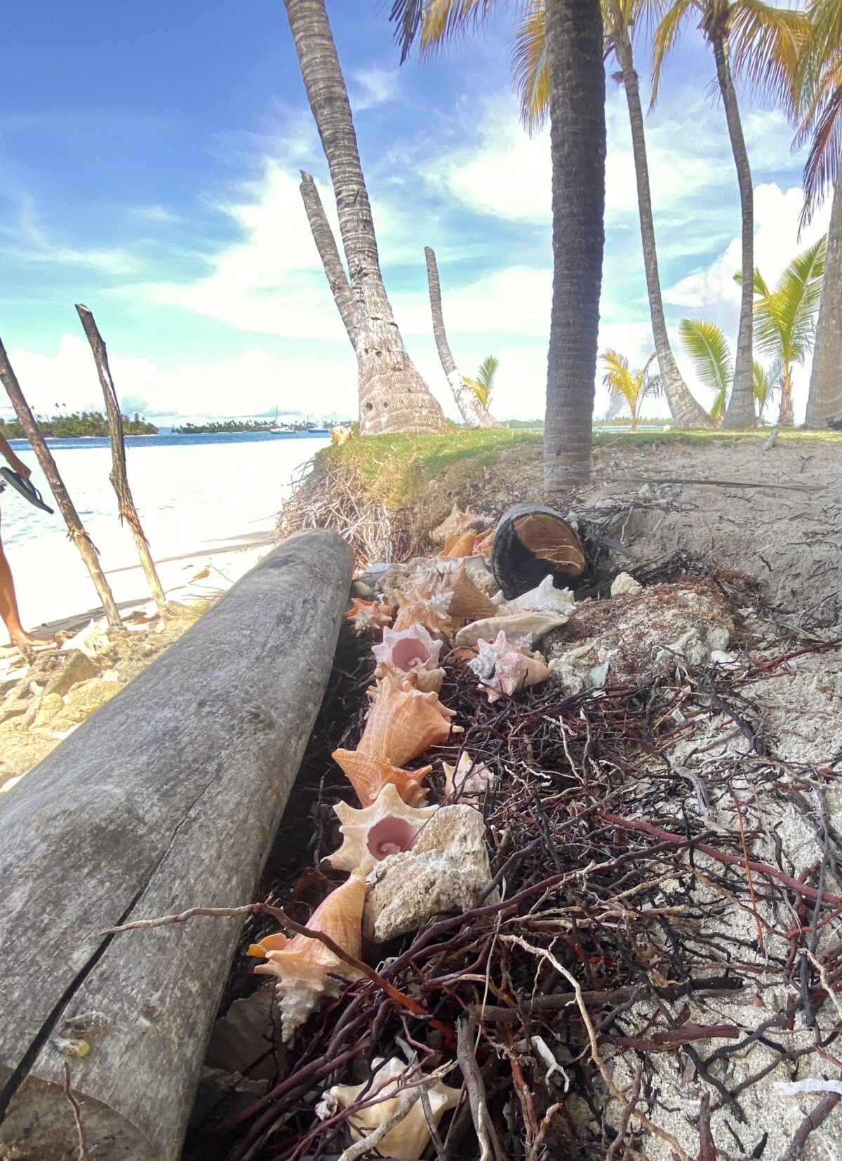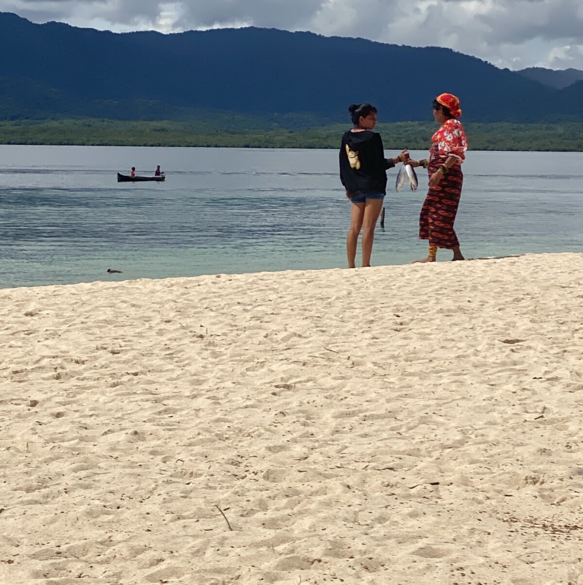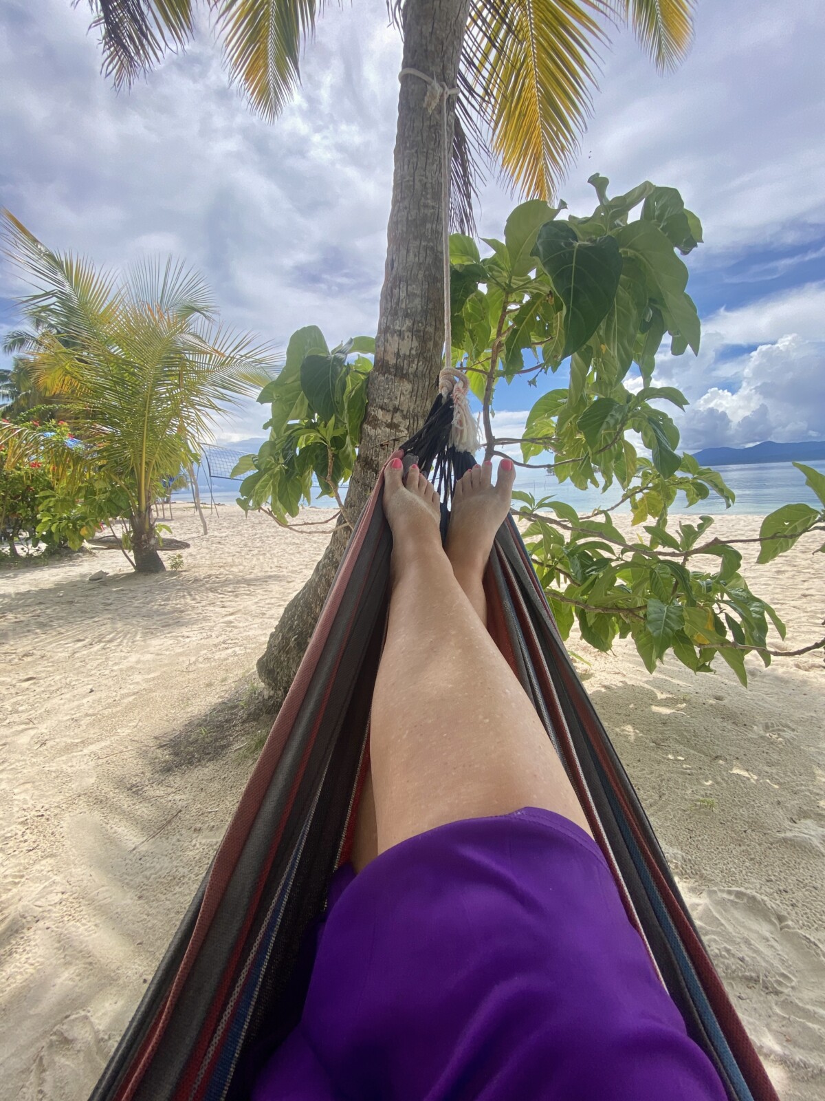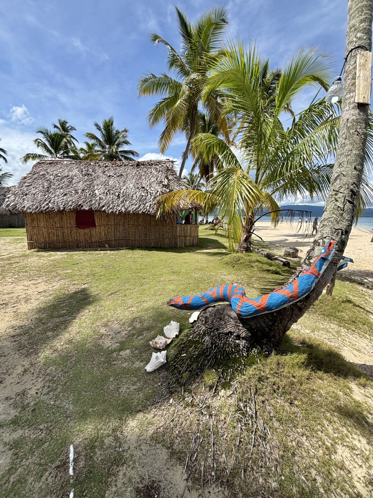 The next morning, which was our final morning of the trip, I opted to stay on the island, while the group traveled by boat, not far, to visit, yet, another island. I enjoyed being the only guest on the island, where I could observe the tribal members doing their thing, when not taking care of us. I hung out in a hammock, trying to catch a breeze. Soon, I heard a horn blow, which I heard to be common amongst the islands as a form of communication; using a Conch shell. A canoe full of men, had the “catch of the day,” and were alerting the island members they needed to come to the shore and collect the fish to feed us with.