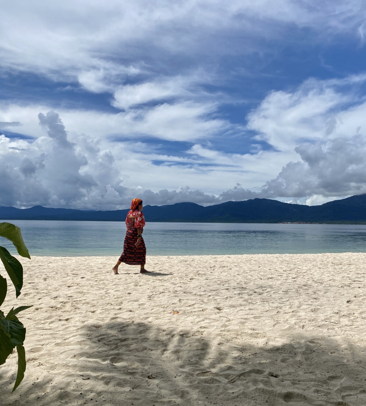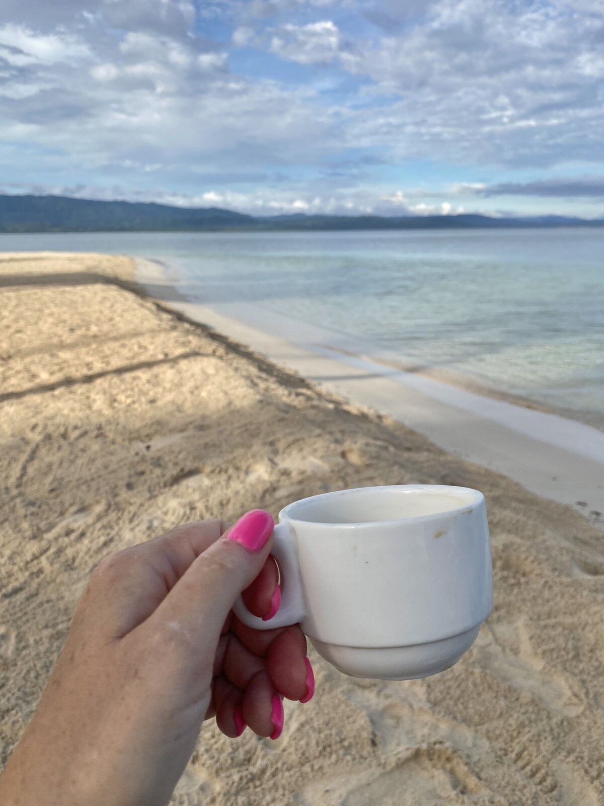 There was one large hut where the gathering was, and we were allowed a sit, which surprised me. There were no pictures allowed in the hut. The men were given cigarettes, and they drank from a bowl, that contained some kind of wine. It was dark and smokey. For me, it was way too hot. I left the celebration, (which we were told was a 6-day celebration, btw) and enjoyed some fresh air, and made my way back at the boat. I waited there, till it was time to leave that island for our next island, where we would spend the night.
