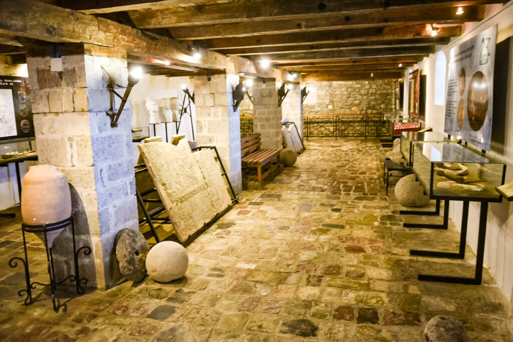 We enter an administrative building that has been turned into a museum. The walls are five feet thick. The little windows lets a glimpse of light in. As we walk down the stone pathway, a narrow trench made of stone, is the exposed sewer system. To the left is a pedestrian walkway adjacent to the cobblestone cart path. The stones are worn smooth with the passage of time. The sound of the call to prayer can be heard echoing and filtering through the canyon.