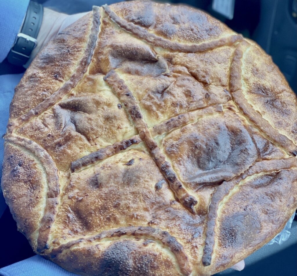 Tarehat Bread is an important part of the Armenian New Year’s Eve midnight meal. The bread was decorated with animal figures or, later, with small figures of temples. Bread personified a request to the pagan gods to send a fertile year. A bean, coin or small button is baked into the bread, and the person who finds the trinket in their slice will enjoy good fortune in the coming year. NOTE: We just love this sweet bread of Armenia. It has a sweet center that melts in our mouths!