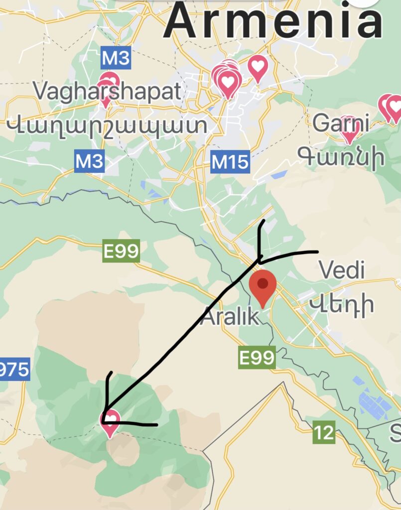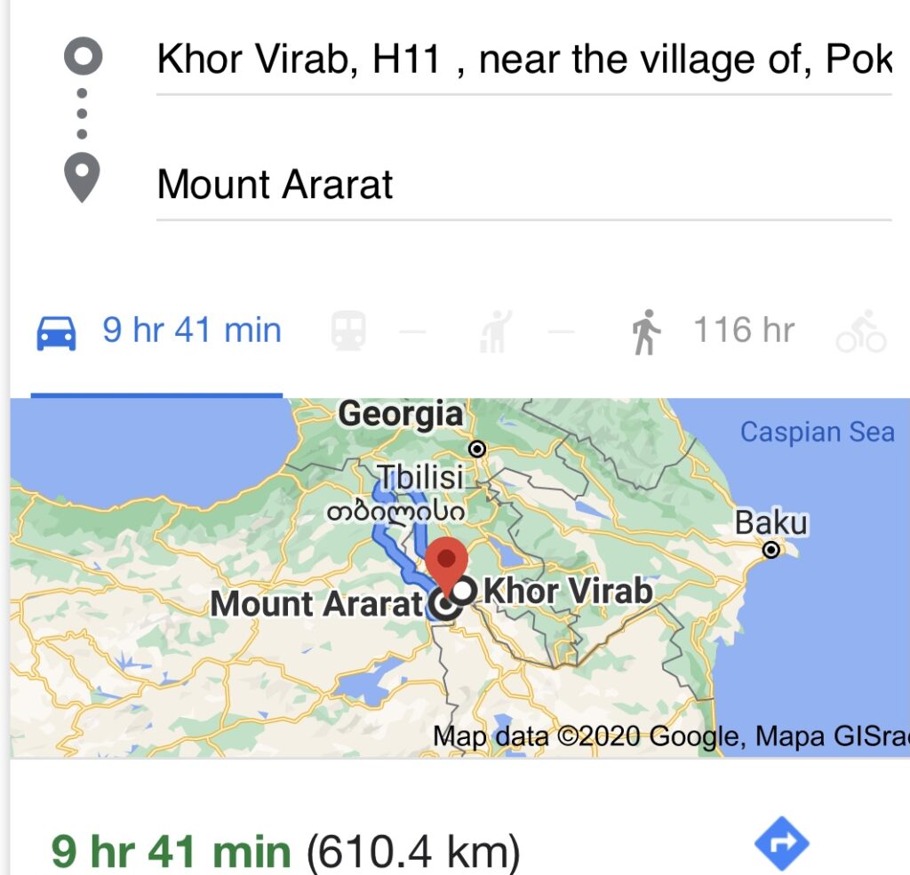 Everything I could gather on getting to the mountain of Ararat, from a directional issue, made zero sense. Our starting point was Khor Virab, and “by way of the crow flying,” it would take a few hours only, if we could drive, due southwest into Turkey; BUT, we did not get to drive directly to the mountain. Instead, we took on the almost 10 hour drive!