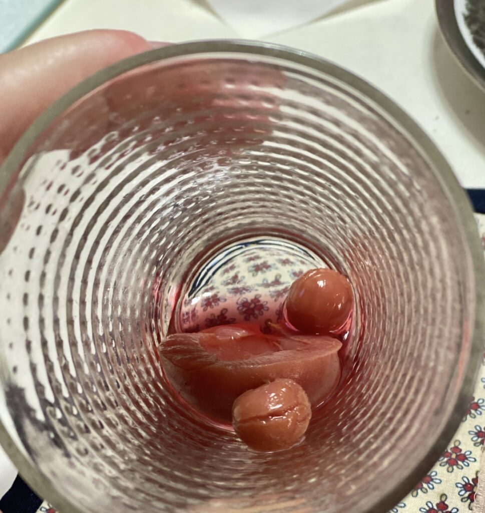 In addition, on the right side, we had some baked Bell Peppers. Finally, the compote fruit drink on this evening was cherry