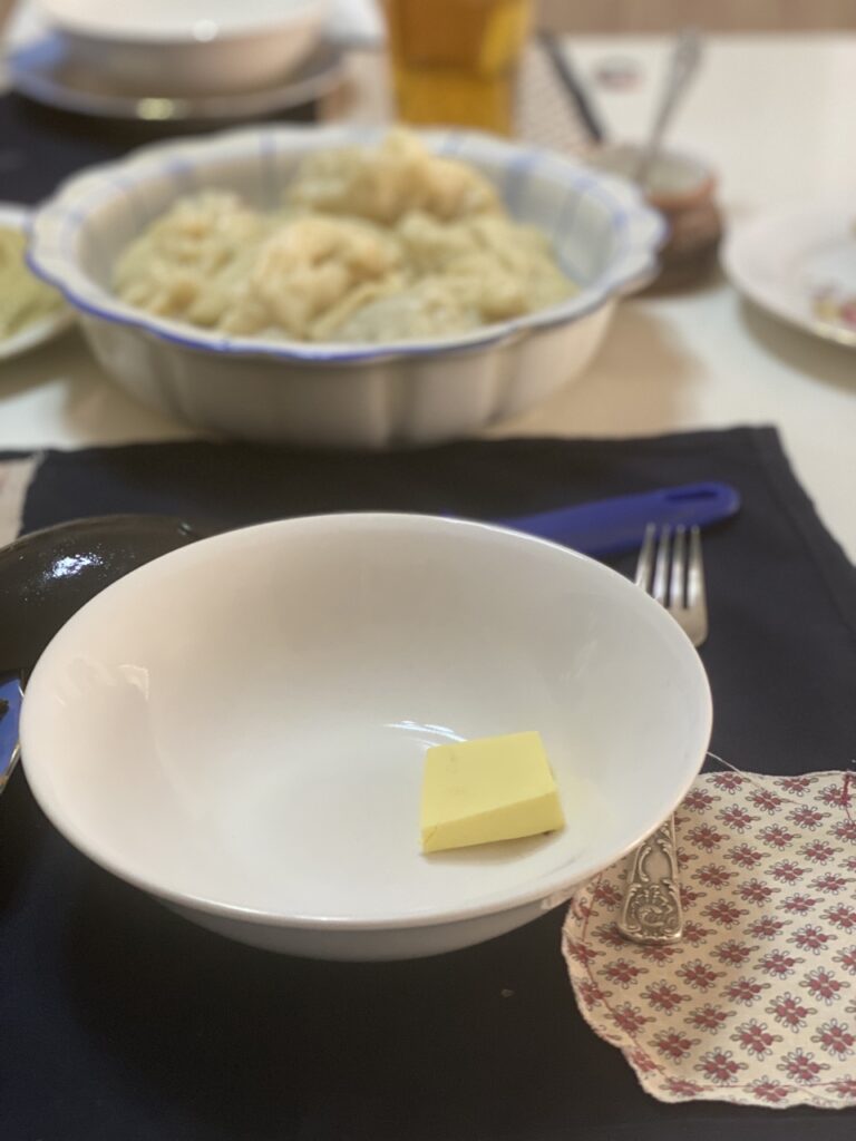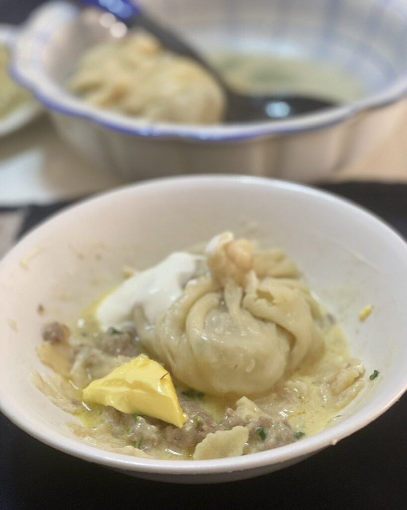 Russian meat dumplings, known as pelmeni or peljmeni, is traditionally filled with ground beef, pork, and sometimes lamb. It’s then served with red wine vinegar, black pepper, and melted butter. Mushroom, sauerkraut, and vegetable fillings exist in other regions of Russia.