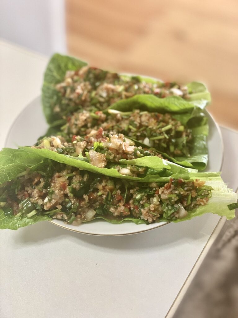 Tabbouleh, also commonly spelled Tabouli, is a classic Lebanese vegetarian dish. It’s commonly served as a side salad or as part of mezze (small dishes served as appetizers).