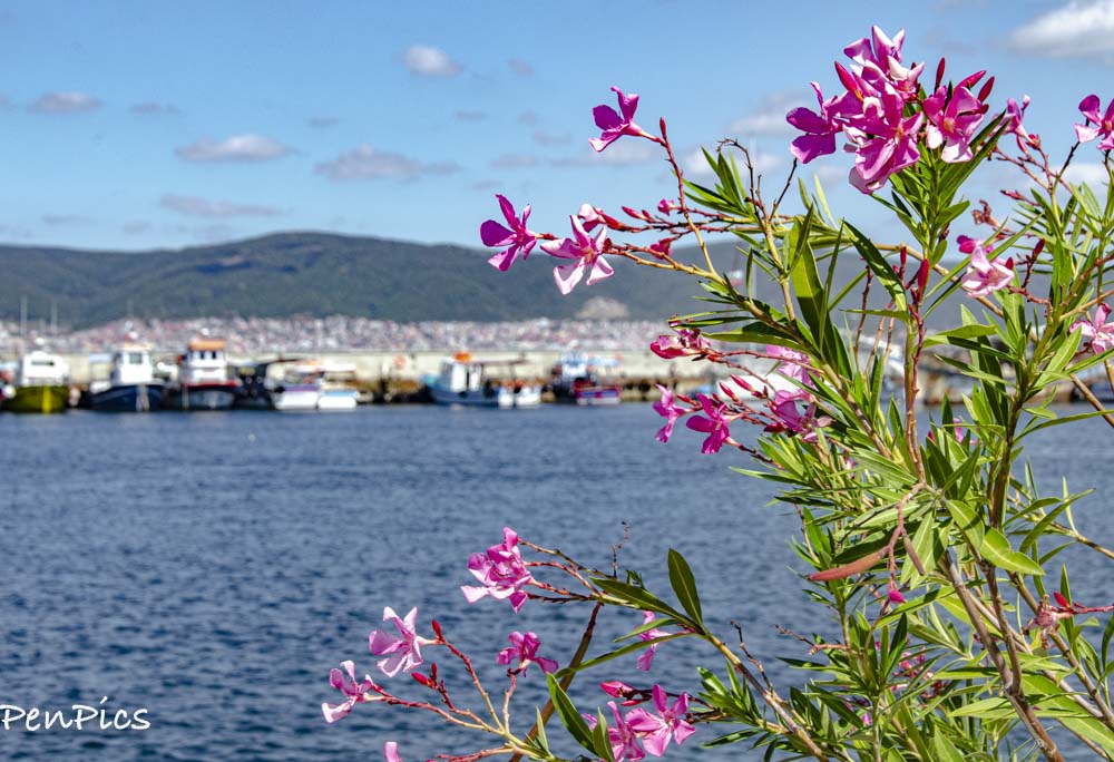 We entered the islands, by way of driving along a short causeway and parked the vehicle, then wandered around. It is still hot weather, but not like it was last month. The old homes, which are stilled lived in, or have been turned into businesses like restaurants and hotels, have an Ottoman-style, which we saw in Turkey.