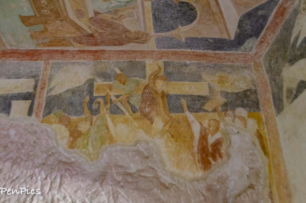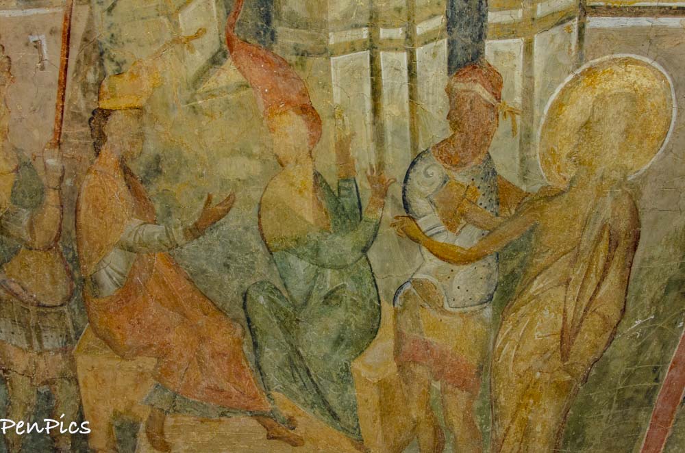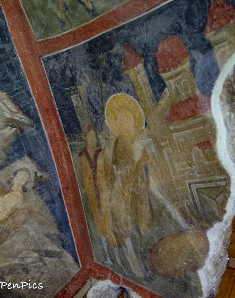 There was a gentleman watching over the church. He did not speak English, but did his best to show us the Frescos and their meanings. I caught certain words that helped confirm what we saw…. we did not have to pay any entrance fees, though the internet posts will indicate it costs money.