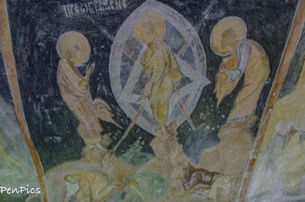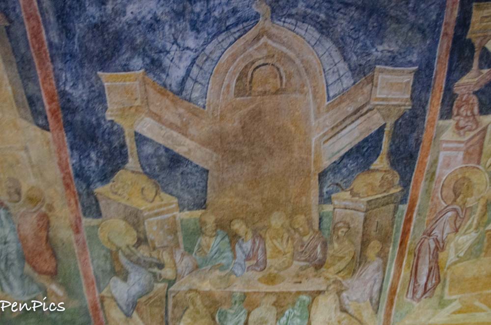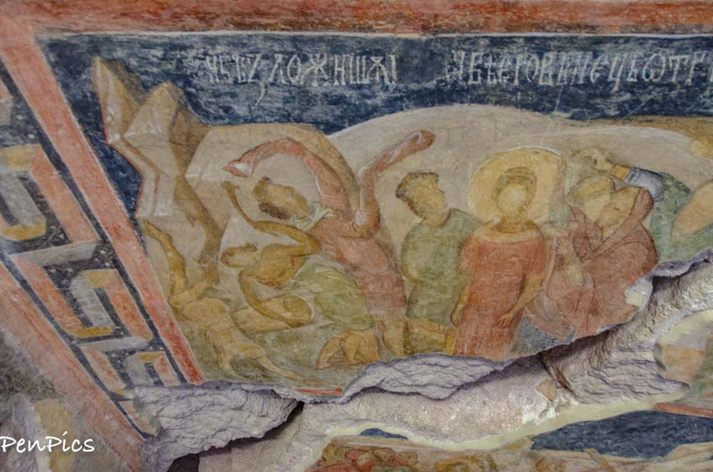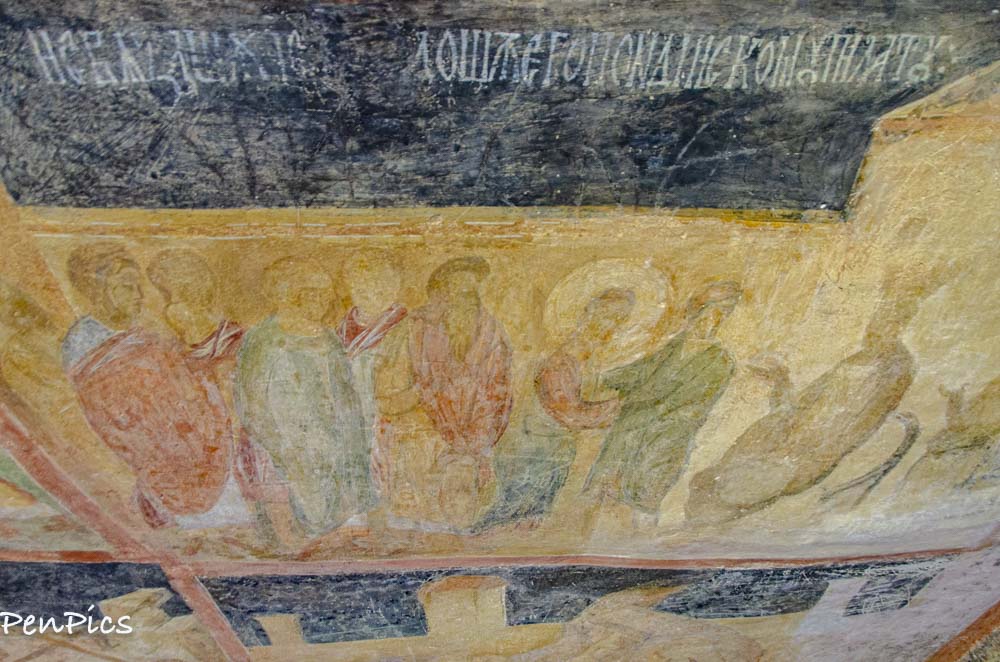 The paintings represent famous scenes from the Bible. Specialists point them out as a great art achievement because they differ from the canons of Byzantine iconography from that time