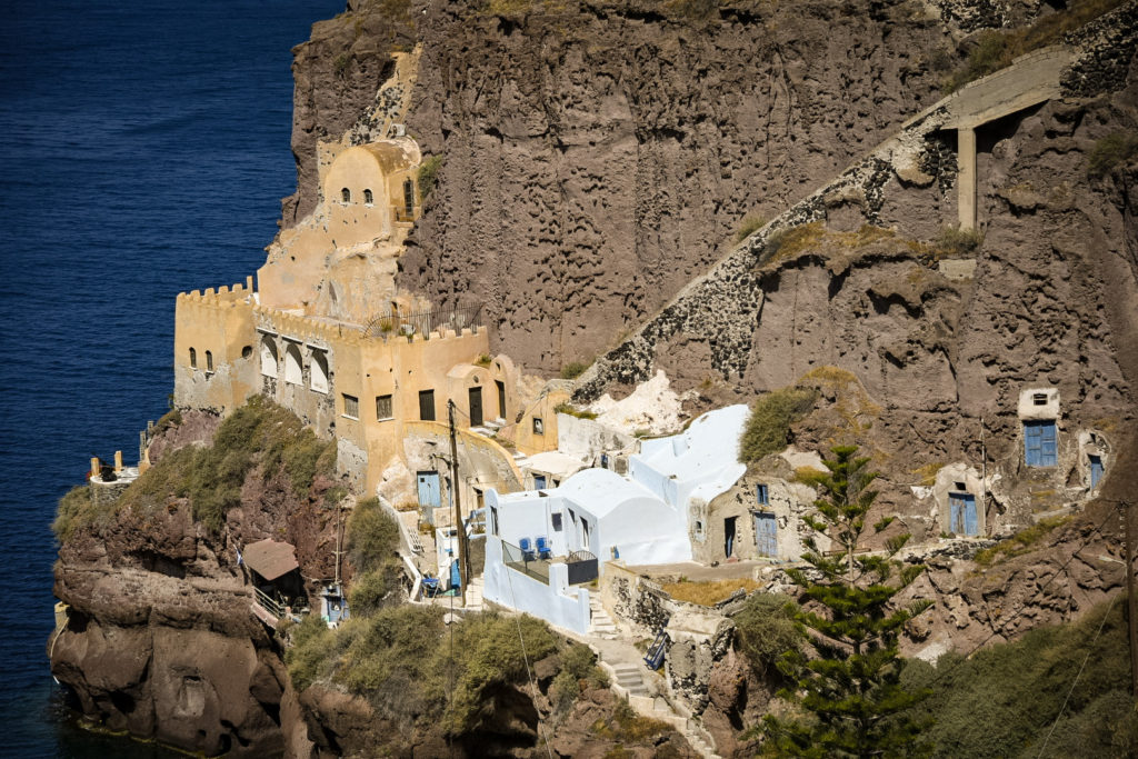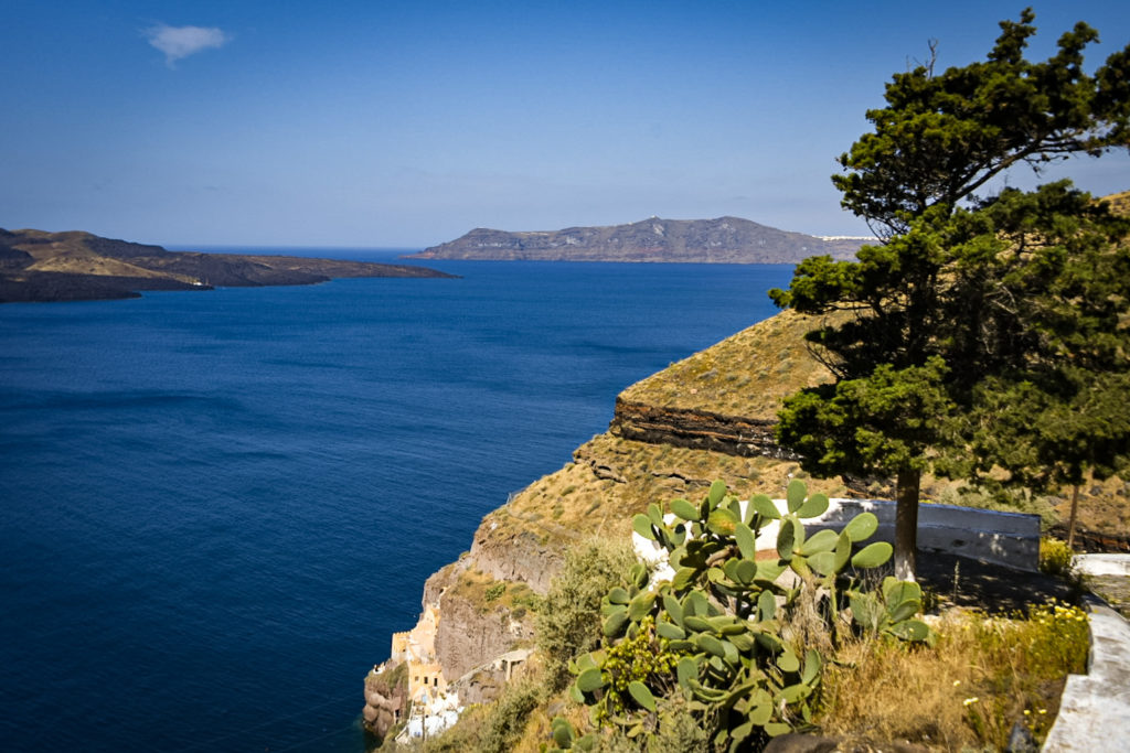 The blue sea melted into the sky at the horizon. Wispy clouds painted the sky, as I gazed down at the old cave-homes, below. A few boats were crossing the Aegean, with a small wake, pointing towards their future destinations.