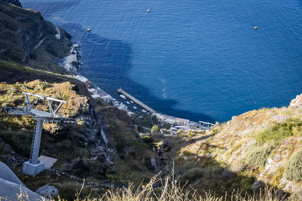 In the distance I heard the bells, then three “angels” came around the corner. I let one of the donkeys talk me into riding the rest of the way up the cliff. I had to, for everyone wants to ride the famous Santorini “donkeys” up from the old harbor. It’s a well-advertised enjoyment, during the normally busy tourist season. I got very lucky, as we haven’t seen any donkeys to ride, since we arrived on the island. Well worth the 10 Euro I paid.