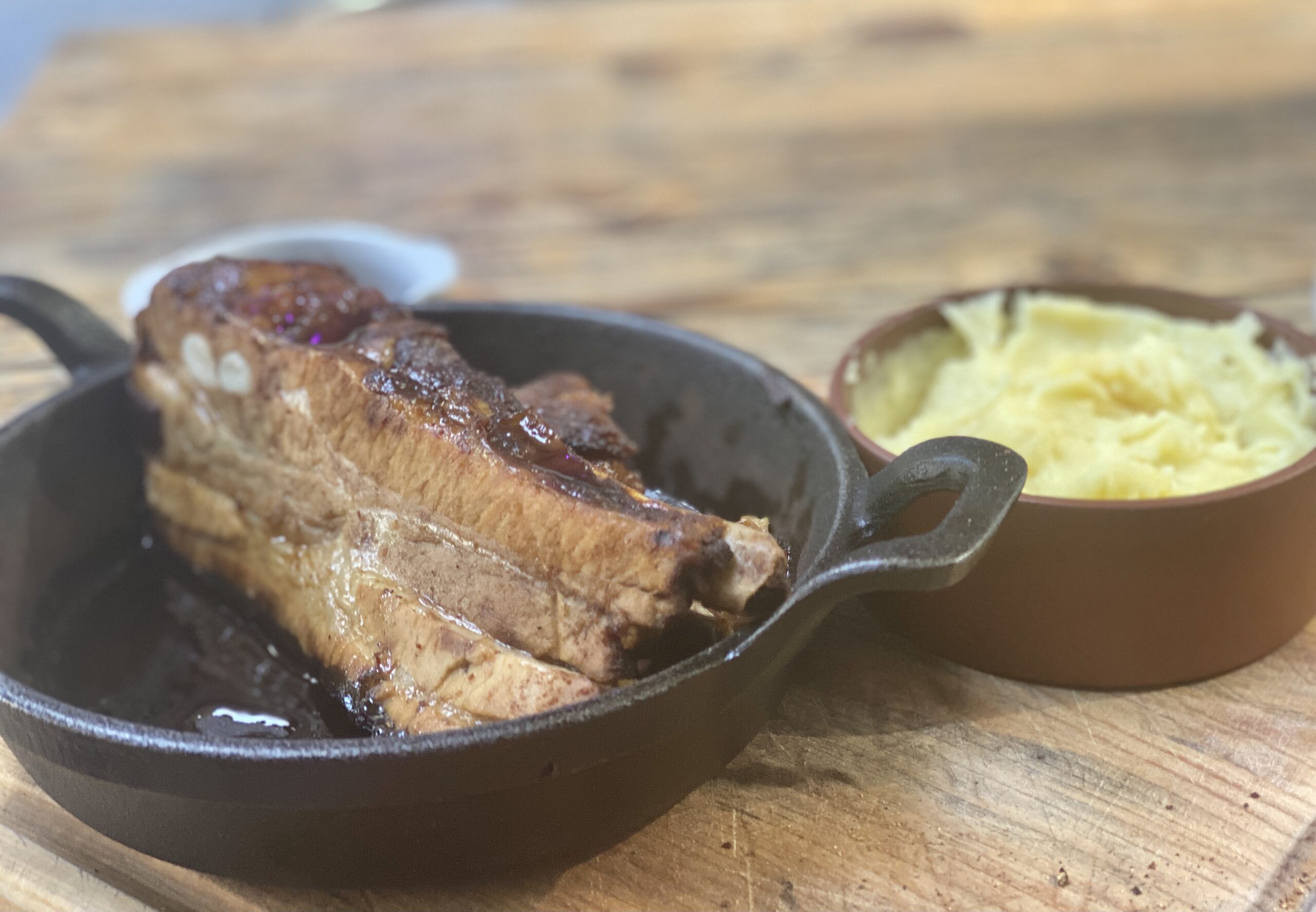 ⬆️ The pig meat was very good! The hooves turn black because they eat a diet of acorns.