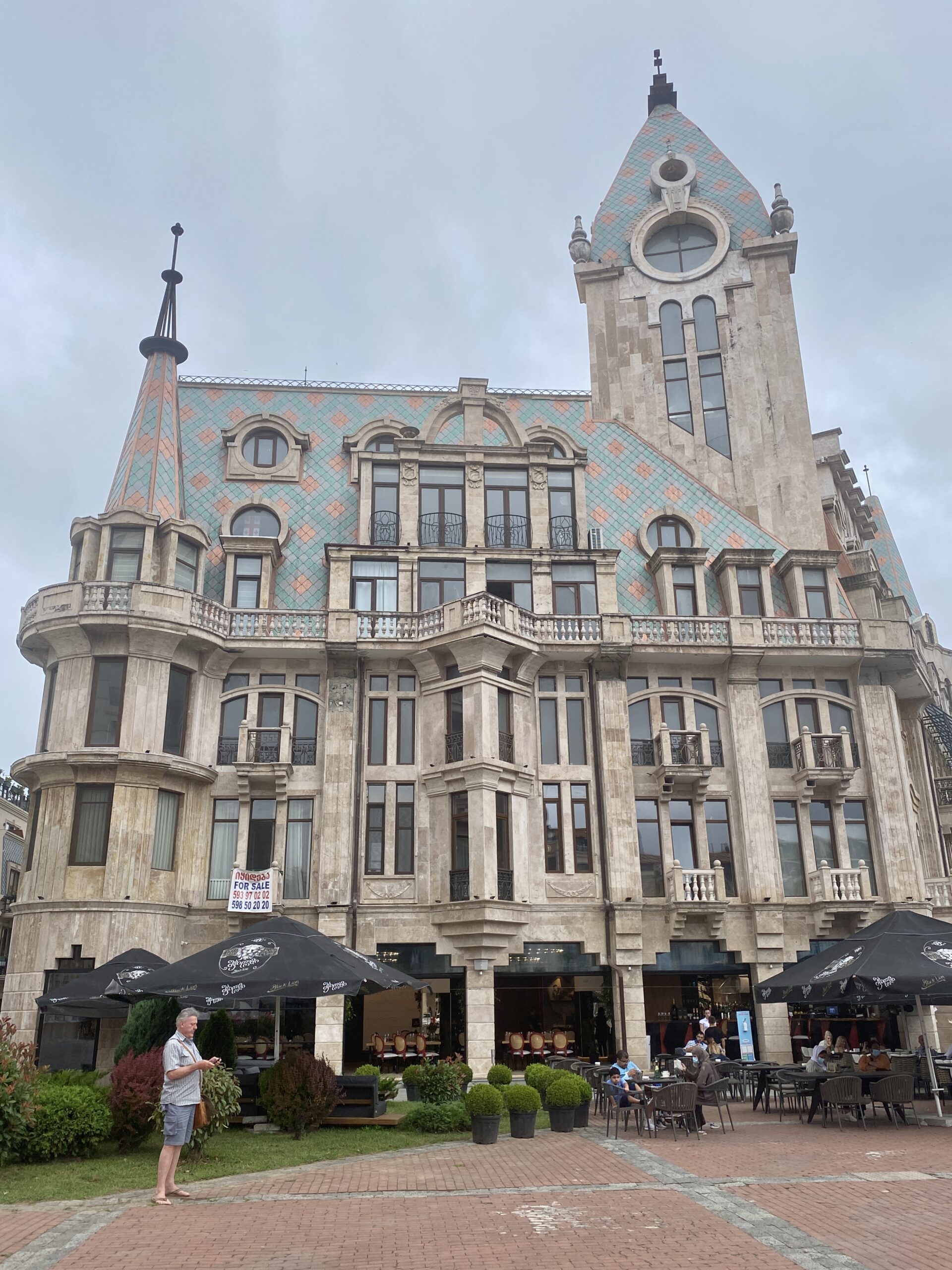 Back in Batumi, ⬇️ we got a great rate in a newly remodeled hotel. $16/night. It’s basic and clean with free parking, but no breakfast or restaurant. No problem, as we have the car. The weather is not “beachy” weather at all; instead cloudy, drizzly and a bit muggy, but there is the Black Sea Mall across the street. Daryl is there checking it out, now, after taking a nice nap, earlier.