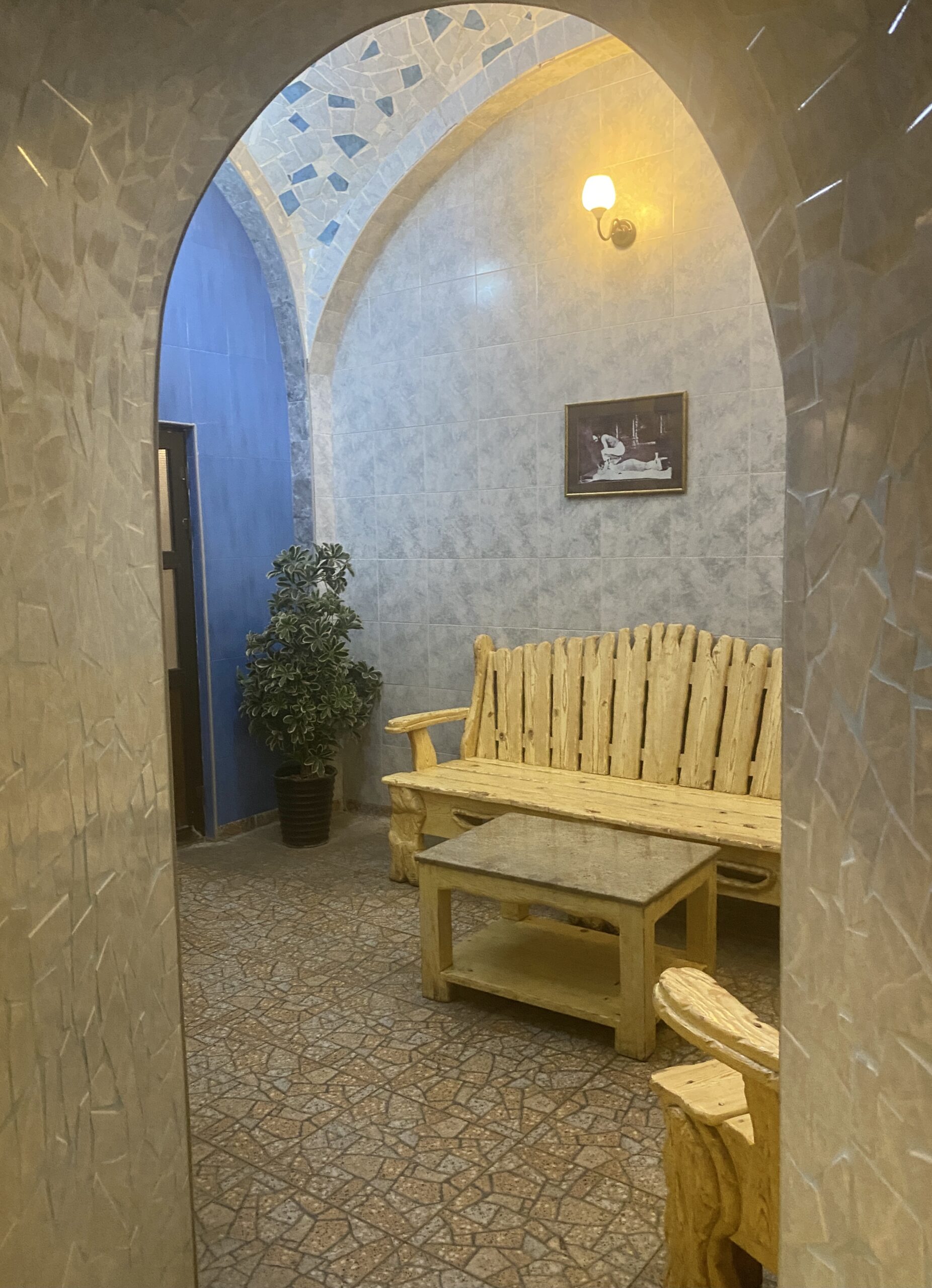 We will try this bath house on our next visit. ⬆️ “Orbeliani Baths” has a building front that looks like a Persian Isfahani mosque, with beautiful blue tiles and two small minarets.