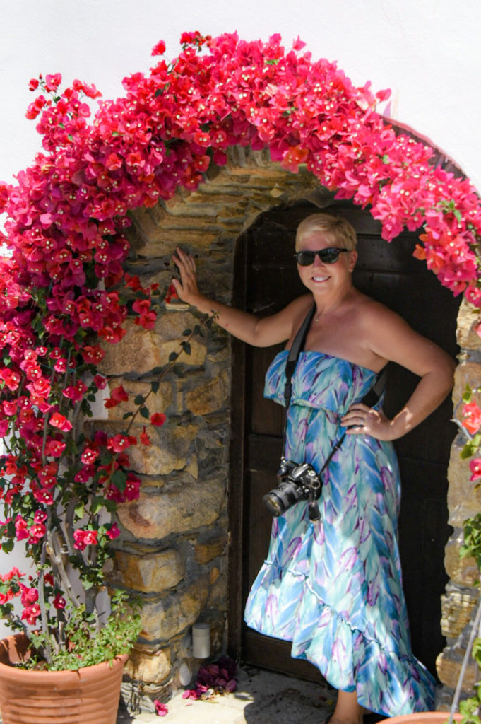 We went into one village, and down a staircase with stone stacked walls narrowing the path. After a short walk, we came upon a lady pressure-washing the walls of a small church. We followed the electrical cord into the door of the church. Wow, such a beautiful sight! Churches are always a joy to see all over the world. Not many churches are open during these Covid19 days. Only some, we can view through a window; a dark room that a human eye can not make out. Our cameras are very sensitive and we see the interior’s splendor.