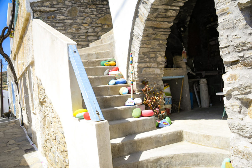 Climbing down stairs and following a red and white marker, painted on walls and paths, mark a route to follow. The homes are squeezed together in a shared space, linked with tunnels, stairs and pathways. White is the most common color for homes, but many are in disrepair. The shell of the buildings are strong, made of rocks, cemented together, but the thin cement veneer spread on the surface has crumbled away, revealing the complexity of the mason’s art. They give an old-world look and blends in, in a positive way. The past is still there in form, a Phoenix, for someone to turn it into a home. Newly restructured homes are so inviting.