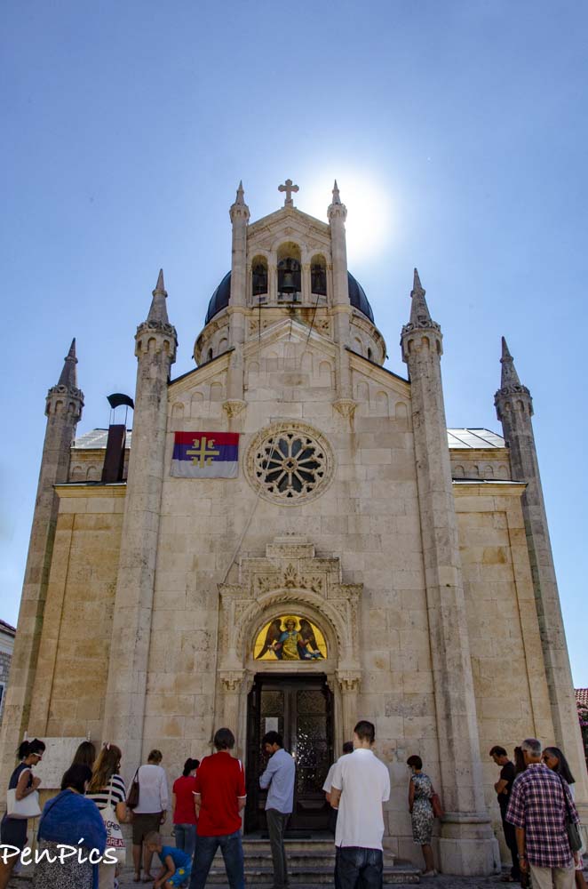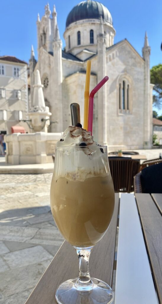 Being there on a Sunday morning, while enjoying the Old Town of Herceg Novi, we loved hearing the church bells ringing, and church service in session. Though it was only around 9AM, it was hot and we were looking to rest up with our iced coffee break. We sat in the shade, with a fan blowing on us, and watched the people going in and out of the church for the service, listened to the singing, and sermon in foreign languages. It was both a joy and a delight.