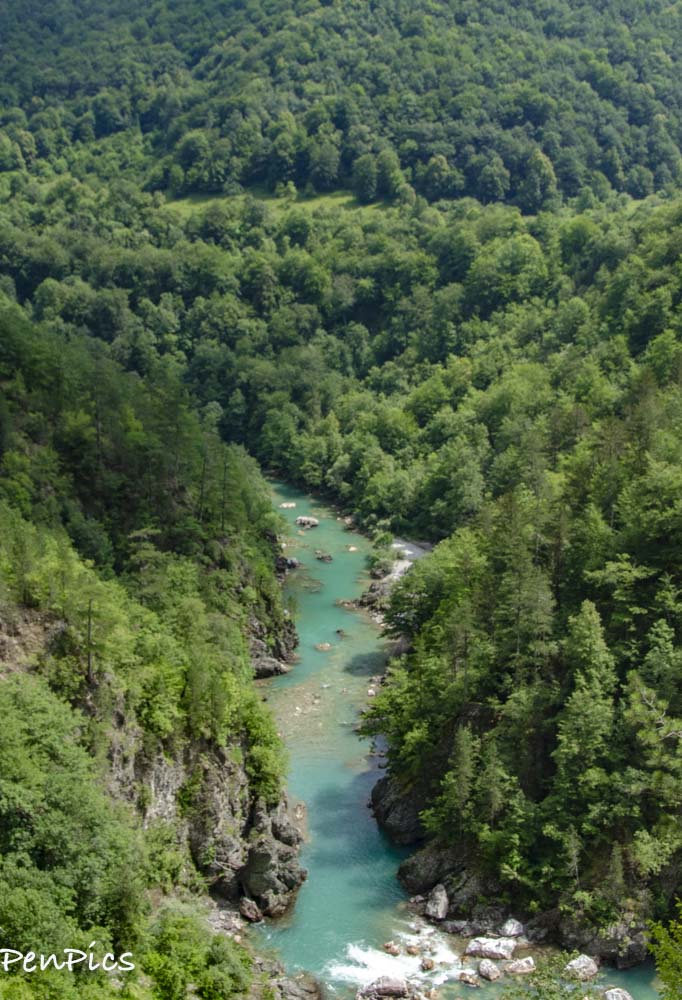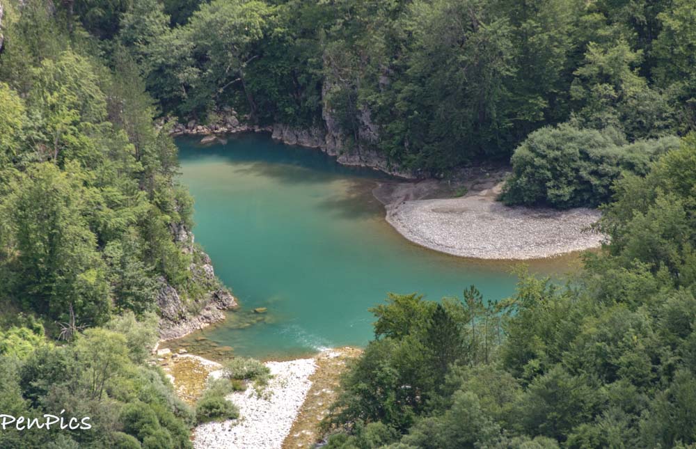 This canyon in regards to its beauty, is known as the “Tear of Europe.” Tara River is almost 100 miles long, has 14 different rivers flowing into it; seven from each side, and it has 69 rapids on that path. Another interesting feature are the cascades. Since we are here in the heat of the summer months, most of them are not flowing, or even noisy, but I have no doubt with the snow runoff of spring, the loud noise of the cascades can be heard even in the upper parts of the canyon.