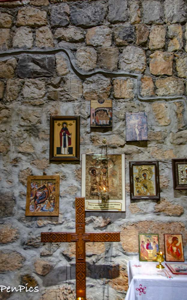 I have never been more disappointed to not be able to go inside a historic relic. It was locked up and nobody was around, but an old dog and a mama with four kittens. Given its remote location, I get that leaving it unlocked is not a good idea, but timing is everything and we just happen to come along when nobody was there. There are many, many monasteries and churches all over, but many are new, following the fall of Communism. There are few, like this one that was not destroyed during the communistic era. Obviously the remote location did help in the long run to preserve it through its many years of war it faced.