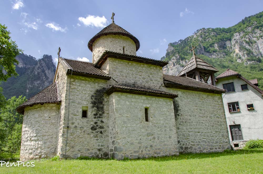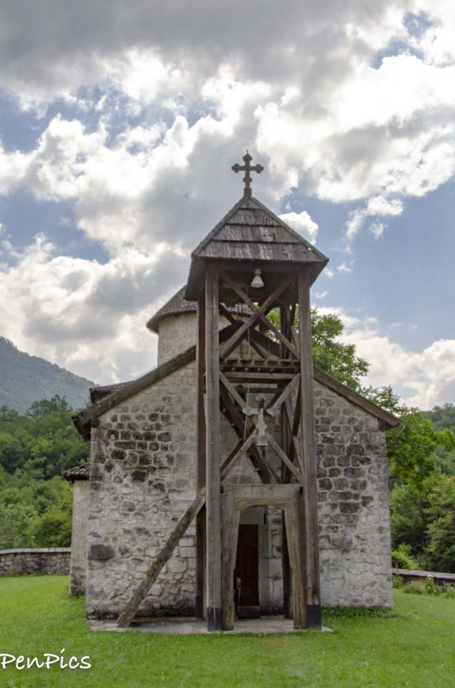 Today, this place is one of the favourite picnic spots for inhabitants of Mojkovac, and visitors can take a break and sit on the school desks set there in memory of the first pupils. In 1609, during the time of Abbot Joakim, the church was frescopainted. Due to the frequent destructions, frescoes have been only partially preserved, and plaster ornaments of vine leaves and rosettes, made in a very shallow relief, can also be seen. The monastery is recognisable by its wooden bell tower set by the facade of the church.