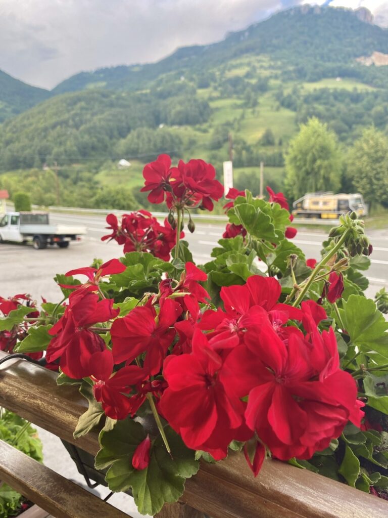 Finally, we did stop at a roadside hotel, with the typical Alpine flare, got a room, some bean soup, then snuggled in for the night!