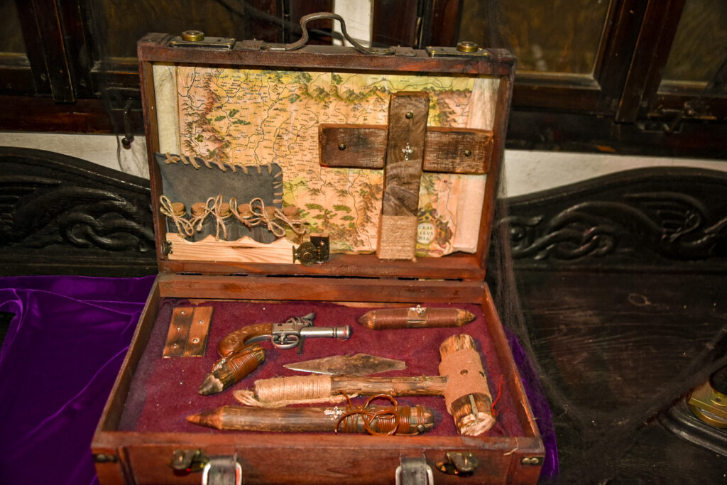 We go inside and the history can be felt; the unseen ghosts and the cries in the night. Daylight is the only safe time and maybe during a full moon. The furniture was dark and the trim was black. A Vampire kit is at the ready, just in case it is needed. Just break the glass and follow the directions, if you dare…hahahahaaa let me bite you on the neck.