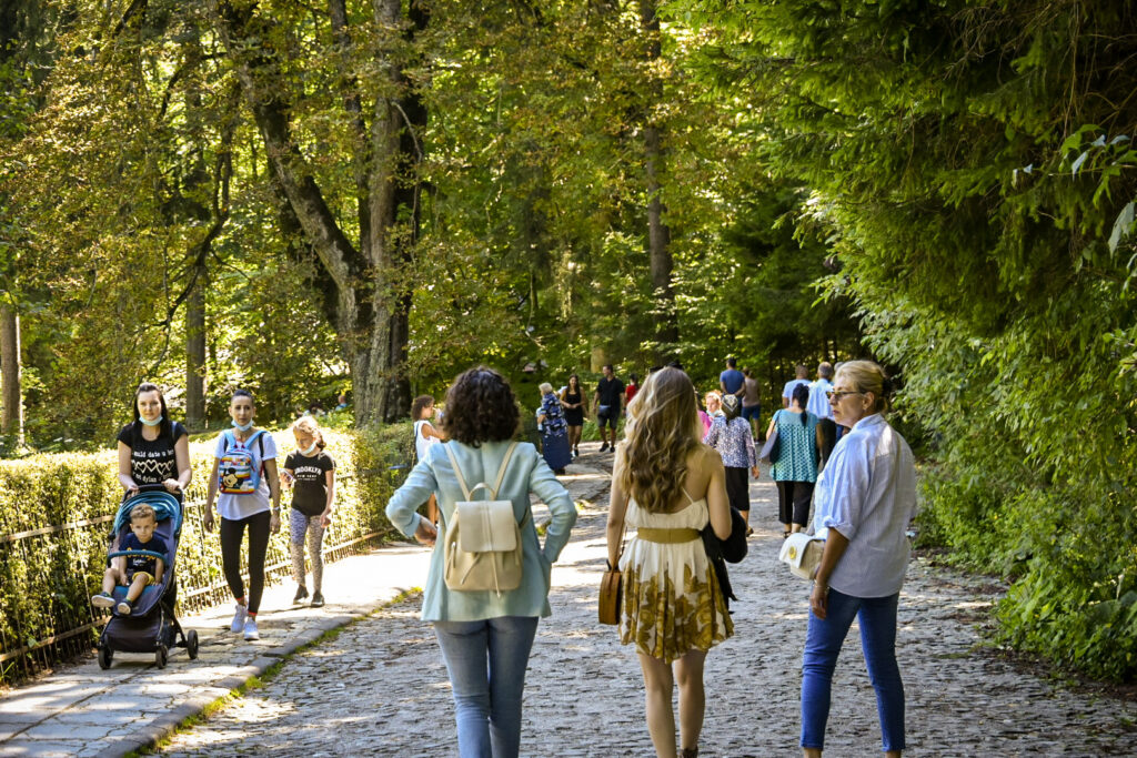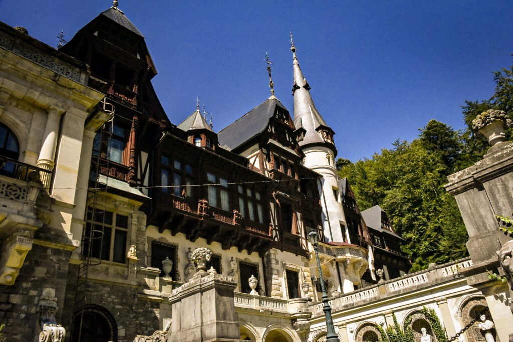 As we hike up a cobblestone path from a hotel Bunny stayed at seven years ago, we made our way to Peles Castle. The path was steep and some cobbles were raised, causing a couple of stumbles. Gathering our strength along the way, we purchased some raspberries from a lady. With renewed strength and catching our breath, we enter the ticket area for our self-tour.