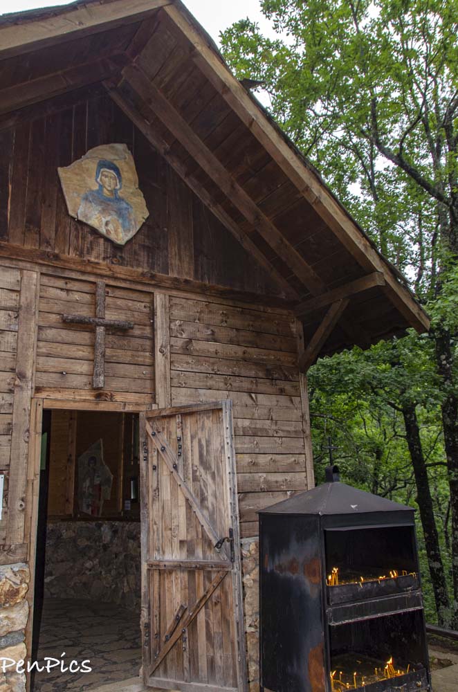 Even up in the mountains here, there is a darling wooden church to stop at, coming down from the pinnacles.